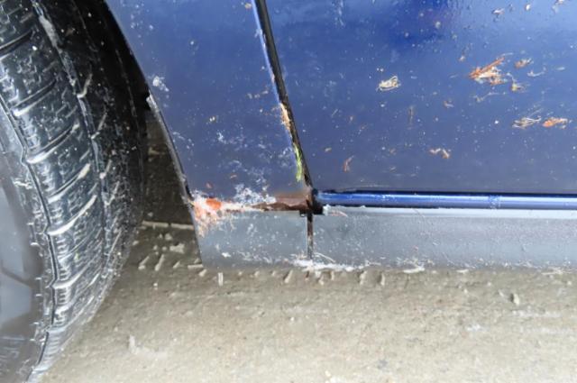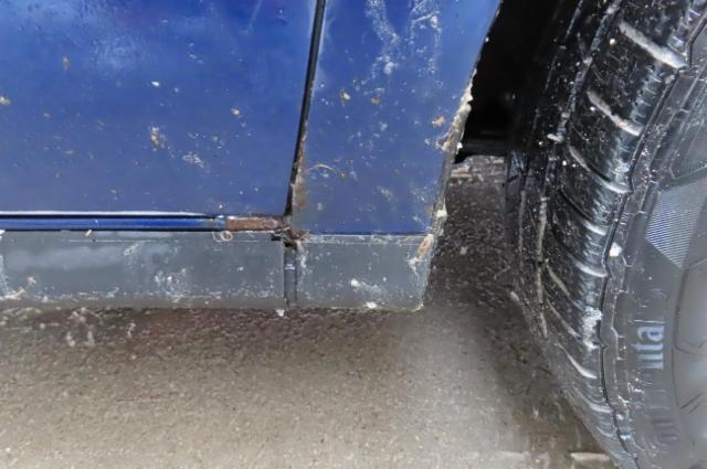 Seitenwand hinten links eingedrückt/ausgestaucht.