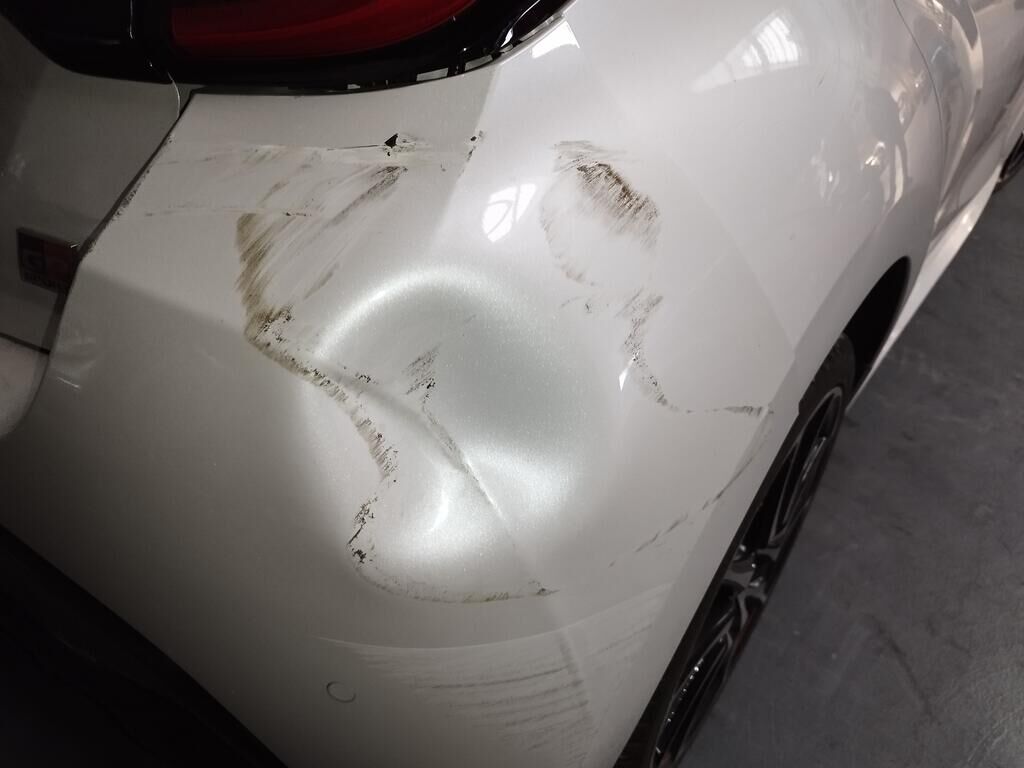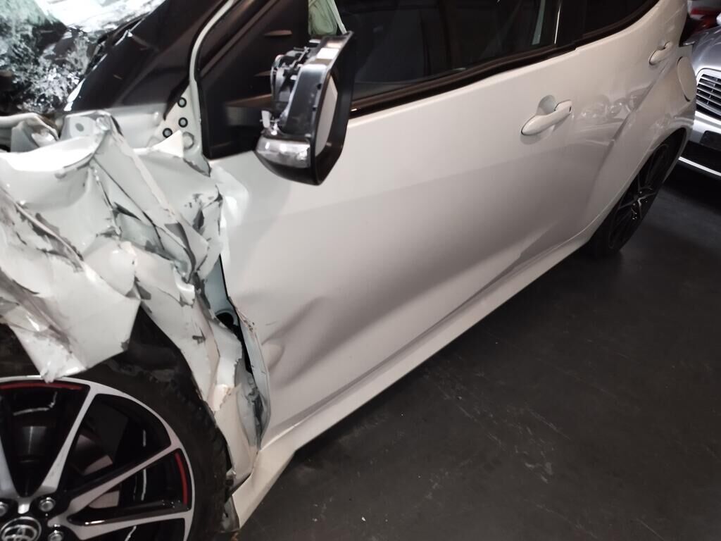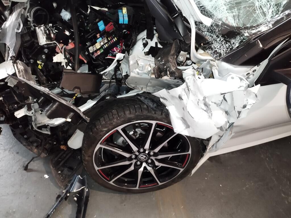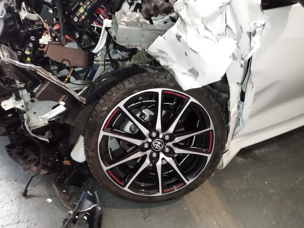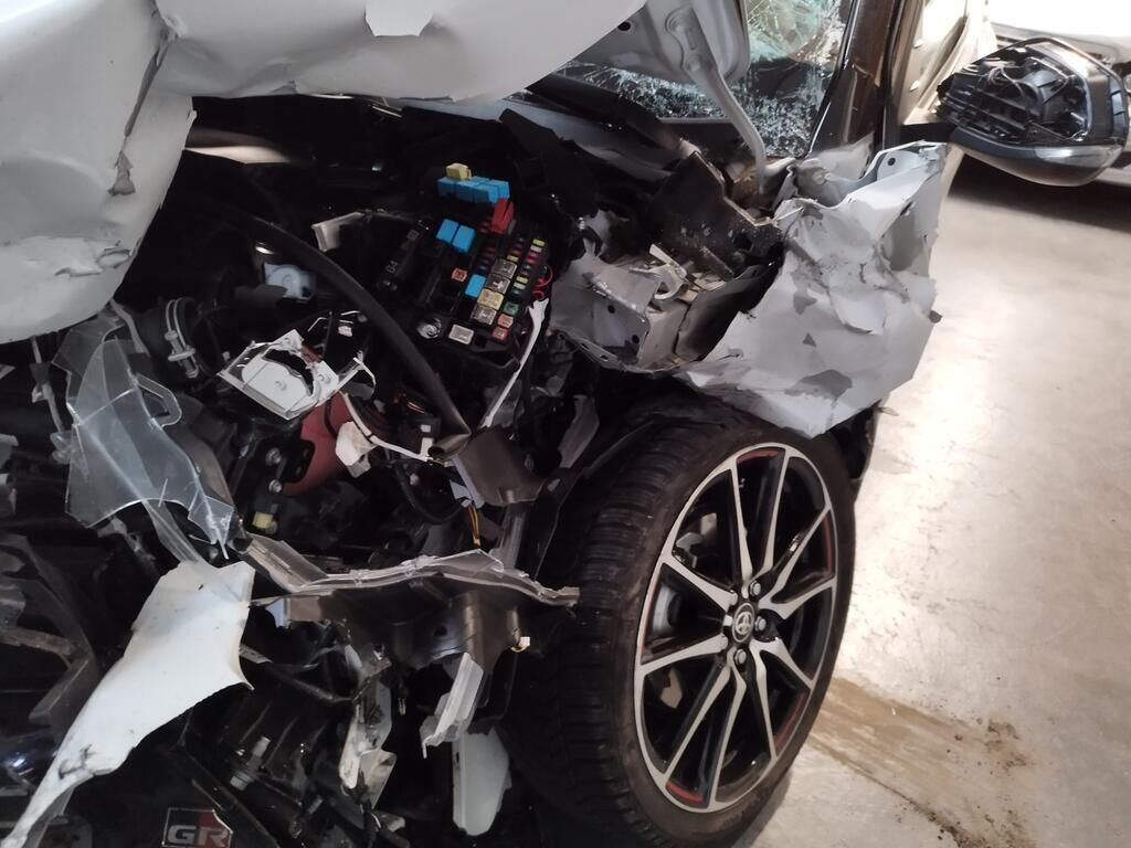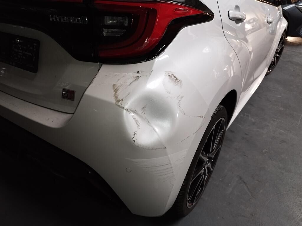 Die ganze Front links ist deformiert, diverse Teile abgerissen, Verkabelungen abgerissen, Sicherungskasten ausgerissen, Aufhängung vorne links abgerissen, die Frontscheibe ist gerissen, Fahrer-Beifahrer sowie beide Kopfairbags sind ausgelöst, alle Gurtstraffer sind ausgelöst, die Stossstange hinten rechts ist deformiert, die Heckleuchte rechts ist gerissen.