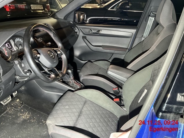 Türgriffe aussen in Wagenfarbe, Bremsenergie-Rückgewinnung, Multikollisionsbremse, Getriebe: 7-Gang DSG, Teppichfussmatten vorne und hinten, Elektronische Differentialsperre (XDS+), Räder: Reifendruckkontrollsystem, Servolenkung, Airbag: Window-Kopfairbags, Dunkel getönte Scheiben (SunSet), Wegfahrsperre elektronisch, Assist: Rain Light Assist (automatische Lichtschaltung, Coming Home, Leaving Home, Regensensor, Innenspiegel automatisch abblendbar, Tunnel Light), für Tagfahrlicht, Räder: Leichtmetallräder TORINO 7x17J 215/40R17, Assist: Parksensoren hinten, Media: Radio SWING mit 6.5” Farb-Touchscreen, USB-Anschluss, Fahrwerk: Sportfahrwerk, Laderaumabdeckung, Panoramaglasdach mit Sonnenrollo, Dachhimmel schwarz, Sonnenblende rechts, Licht: Nebelscheinwerfer, Start/Stop-Funktion, Aussenspiegel rechts und links beheizbar und elektrisch verstellbar, Komfortblinker, Lenkrad längs- und höhenverstellbar, Assist: Geschwindigkeitsregelanlage (Tempomat), Klima: Klimatisierungsautomatik Climatronic, Airbag: Airbag Beifahrer deaktivierbar, Fussgängerschutz, ABS, EBD elektronische Bremskraftverteilung, Antriebsschlupfregelung (ASR), Dekoreinlagen, Dekor: Dekoreinlage Carbon Look, Drittes Bremslicht, Gepäcknetze an beiden Vordersitzen, Höhenverstellbare Gurten vorne, Make up-Spiegel links, Befestigungsösen im Laderaum, Airbag: Seitenairbags, SKODA Garantie: Garantie 3 Jahre gegen Lackschäden (ab 1. Inv.), Licht: Halogen-Projektscheinwerfer und LED Tagfahrlicht, Airbag: Airbag Fahrer und Beifahrer, Media: Komplette Telefonvorbereitung mit Bluetooth, Licht: LED Heckleuchten, Regenschirm, Wärmeschutzverglasung, Ablagefach im Kofferraum, Flaschenhalterungen hinten, 3-Punkt-Sicherheitsgurte auf allen Plätzen, Media: 6 Lautsprecher, Einstiegsschienen mit Logo, Make up-Spiegel rechts, Assist: Berganfahrassistent, Sitze: Mittelarmlehne vorne, ISOFIX-Befestigungspunkte für Kindersitz an den äusseren Rücksitzen, Polster: Stoff-Ausstattung, Sitze: Sportsitze vorne – Kombination aus Carbon Optik Leder, hochwertigen Materialien und Stoff schwarz/rot, Pollenfilter (Staubfilter), Kennzeichenbeleuchtung in LED, Nebelschlussleuchte, Gurtstraffer vorne, Media: DAB+ (Digital Audio Broadcasting), Getönte Scheiben, Zentralverriegelung mit Funkfernbedienung (2 klappbare Schlüssel), 12-Volt-Steckdose vorne, Elektrische Fensterheber vorne + hinten, Assist: Umfeldbeobachtung ‘Front-Assist’ mit City-Notbremsfunktion, Sitze: Rücksitzlehne geteilt abklappbar, Leseleuchten hinten, Sitze: 3 Kopfstützen hinten, Lenkrad: 3-Speichen-Sport-Leder-Multifunktionslenkrad für Radio und Telefon,Schaltwippen, Blende schwarz mit kleinem Lederpaket mit roter Durchnähung, Katalysator geregelt, Sonnenblende links, Ablagen in den Türen, Verzurrösen, Scheibenwischer vorne mit Intervall, SKODA Garantie: Garantie 2 Jahre ohne Kilometerbegrenzung (ab 1. Inv.), Heckscheiben-Wisch-/Waschanlage, Maxi-DOT Display, Cupholder vorne, Leseleuchten vorne, Heckscheibenheizung, Kühlergrill schwarz, Elektronisches Stabilitäts-Programm (ESP), SKODA Garantie: Garantie 12 Jahre gegen Durchrostungs (ab 1. Inv.), Nichtraucherausführung, Sitze: Vordersitze höhenverstellbar, Bremsassistent (BAS), Aussenspiegel in schwarz glänzend und Türgriffe in Wagenfarbe, Assist: Kollisionswarnung