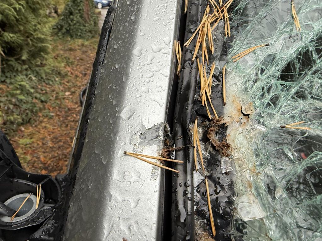 Dabei wurde Stossstange vorne, Motorhaube, Scheinwerfer rechts, Frontscheibe, A-Säule rechts, Kotflügel vorne rechts, Aussenspiegel rechts, Türe- vorne und hinten rechts.