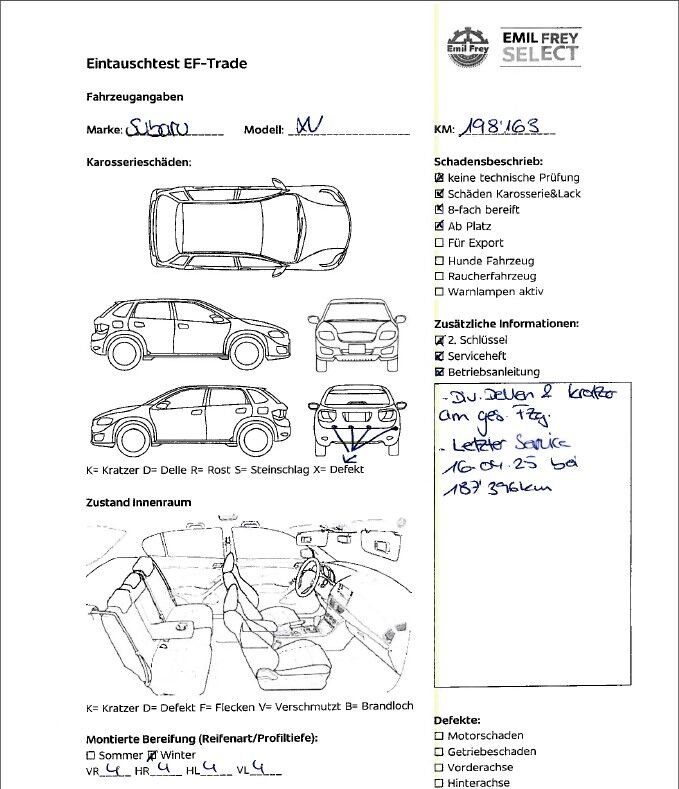 | Keine Gewähr auf die Angaben der Sonder- und Serienausstattung / keine mechanische Prüfung. Fahrzeug wurde unzerlegt expertisiert / keine Haftung für allfällige, nach Demontage bekanntwerdenden Mängel. Fahrzeugbereifung und Ausstattung gemäss Fotos / Fahrzeugkauf auf eigenes Risiko ab Platz ohne Nachwährschaft. – Div. Dellen und Kratzer am gesamten Fahrzeug. – Letzter Service 16.04.2025 bei 187’396 km |