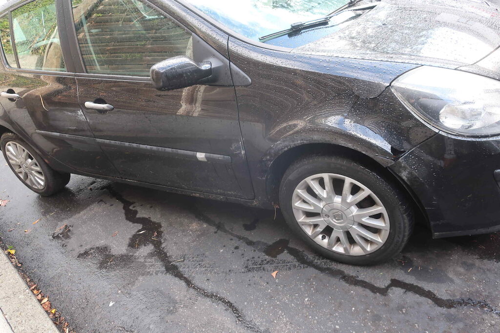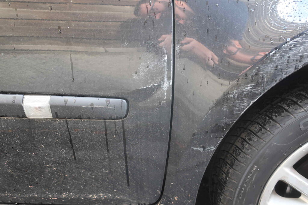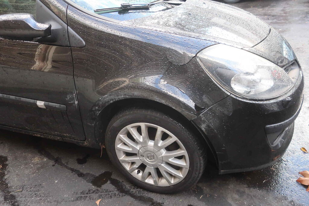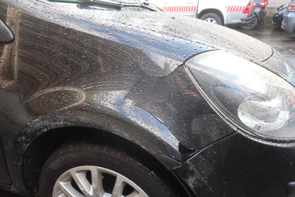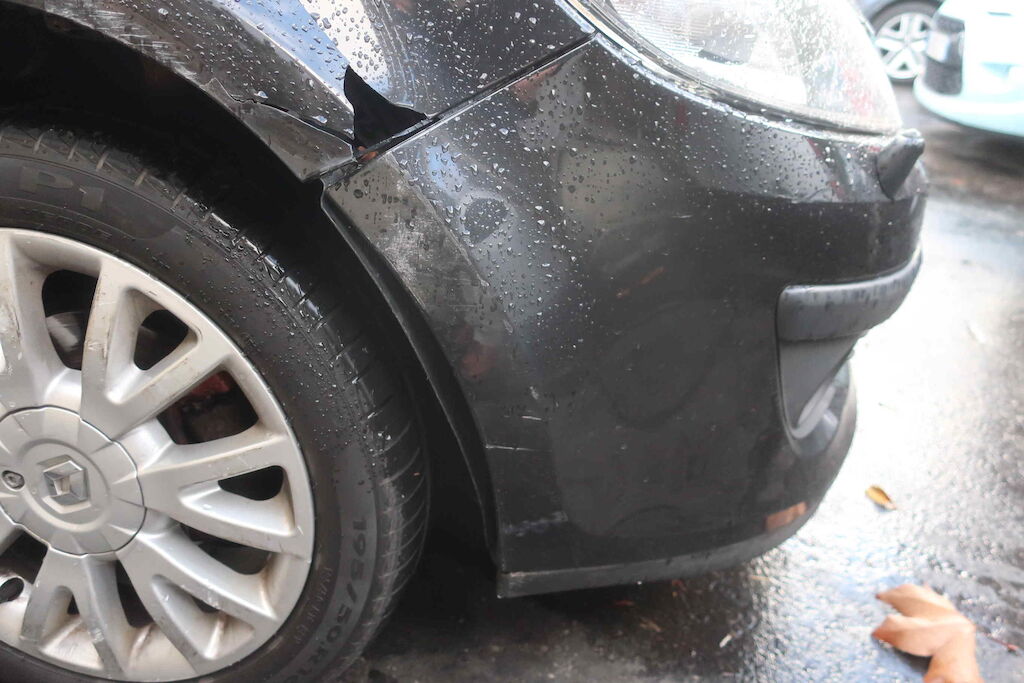 Dommage roue AVG, pare-chocs AV, roue AVD aile AVD, rétro et porte AVD, porte ARD
