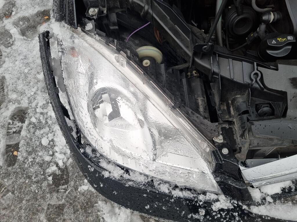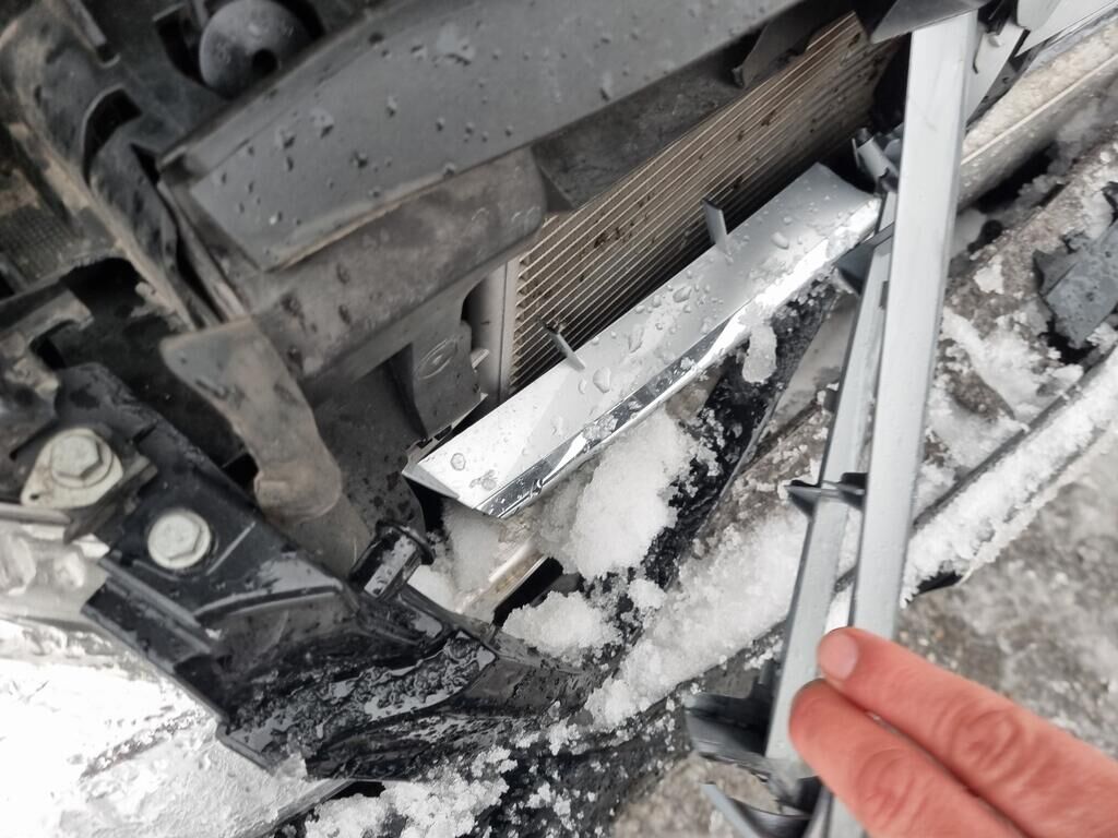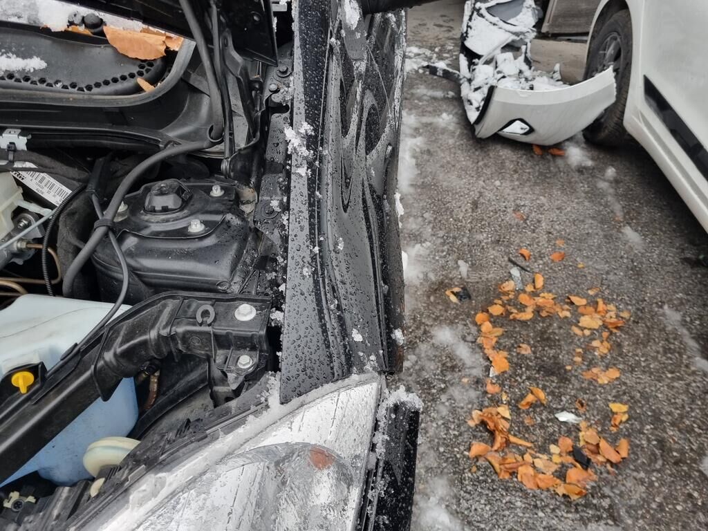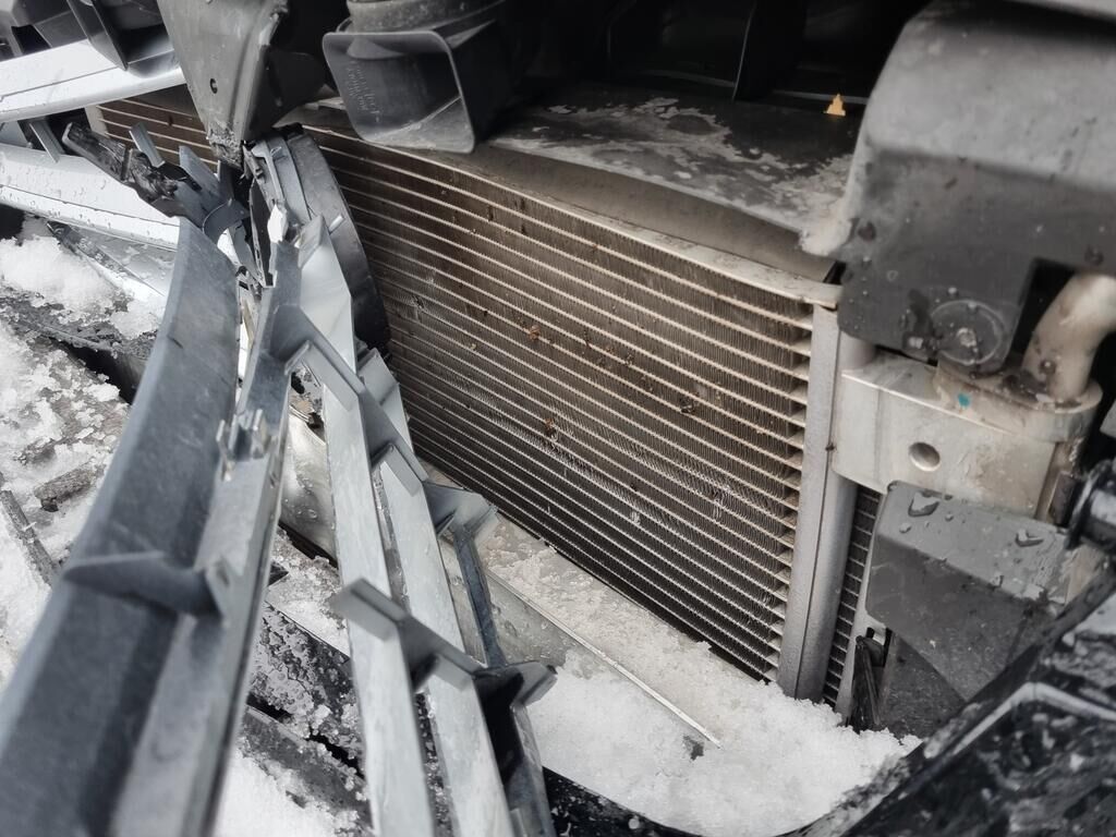 Capot, radiateur, condenseur, aile avant droit, face avant, renfort de pare-chocs avant enfoncés. Phares avant, pare-chocs avant, calandre, ventilateur cassés.
