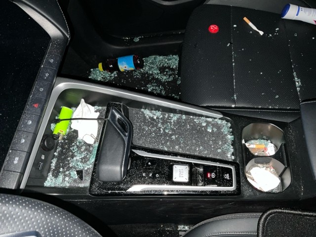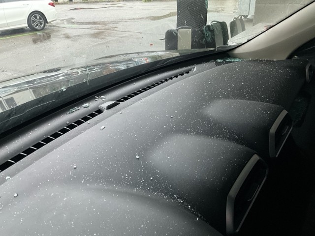 Achse Aufhängungsteile vorne rechts beschädigt. Glas |