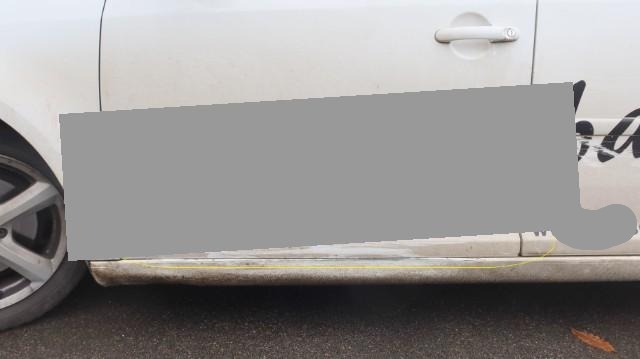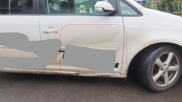 Kotflügel vorne links eingedellt und beschädigt, Türen der linken Fahrzeugseite eingedellt und verformt, Schweller vorne links eingedrückt und deformiert.
