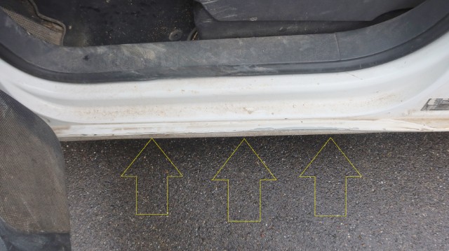 – Türe und Schweller vorne rechts eingedrückt und verformt
