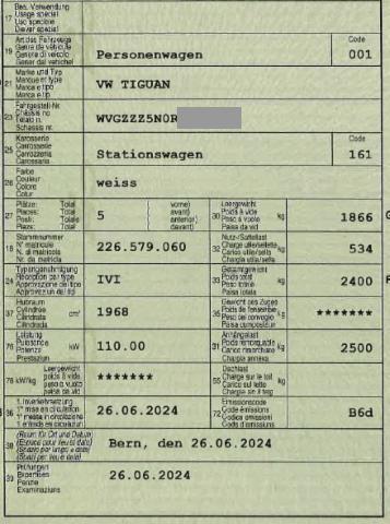 Serienaustattung Textilfussmatten vorne + hinten Höhenverstellbare Vordersitze Airbag Fahrer und Beifahrerseite Kindersitz-Vorbereitung Isofix Innenspiegel automatisch abblendbar Regensensor Lenksäule mit Höhen- und Längseinstellung Aussenspiegel elektrisch verstellbar und heizbar Elektrische Fensterheber vorne + hinten Aussenspiegel elektrisch anklappbar Dachreling eloxiert Komfortsitze vorne Lendenwirbelstützen Vordersitze Deaktivierung Beifahrerairbag Mittelarmlehne vorne mit Ablagebox Seiten- und Heckscheibe hinten abgedunkelt Beifahrer Sitzlehne umklappbar Schubladen unter den Vordersitzen ESP/ EDS/ ASR/ ABS/ BA Reifenkontrollanzeige RKA Rückfahrkamera Rücksitzbank und -lehne asymmetrisch geteilt umklappbar Dieselpartikelfilter ParkPilot vorne + hinten Knieairbag Fahrer Tire mobility system Spurhalteassistent Lane Assist Kopfairbag vorne und hinten inkl. Seitenairbag vorne Multifunktions-Lederlenkrad 3-Speichen Elektronische Differentialsperre XDS Stop + Start System mit Brems-Energie-Rückgewinnung Automatische Distanzregelung ACC mit Front Assist Seitenairbags hinten/ 2. Sitzreihe Klimaanlage Climatronic 3-Zonen Müdigkeitserkennung Keine Gewähr auf die Angaben der Serienausstattungen Parklenkassistent Digitaler Radioempfang DAB+ Fahrprofilauswahl Front Assist (Umfeldüberwachungssystem) Easy Open & Close der Heckklappe ohne Safe-Lock IQ Light Matrix LED-Scheinwerfer We Connect Plus Wireless App Connect Digital Cockpit Pro Radio Ready 2 Discover Streaming & Internet USB-C Anschluss Leichtmetallräder 18″ Frankfurt Sonderausstattung |