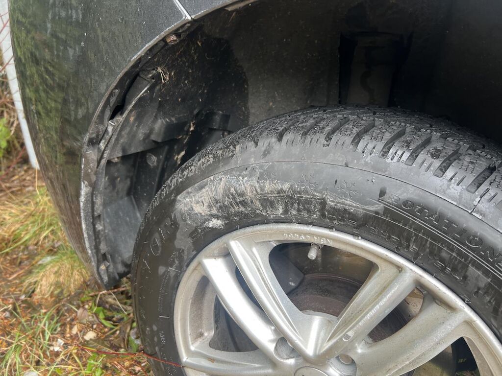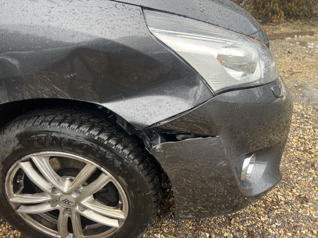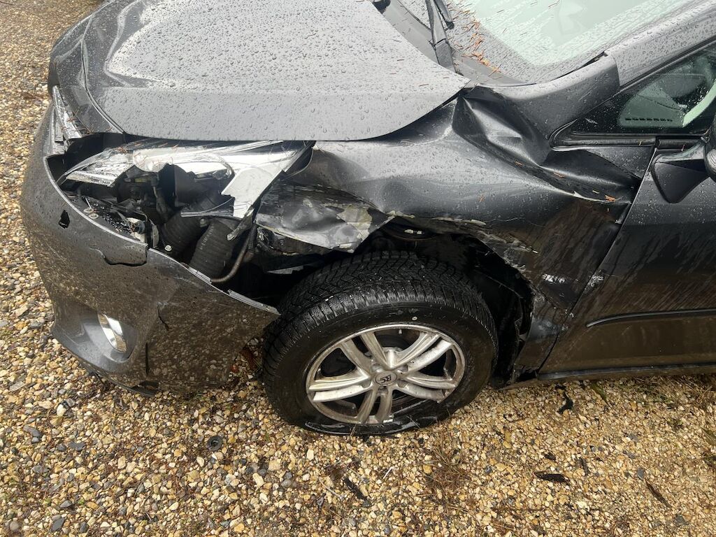 Front links eingedrückt und gestaucht. Kotflügel. Innenradhaus mit Streben und Türe v.l. deformiert. Diverse Anbauteile gebrochen. Kratzer A-Säule. Rad/Reifen und Aufhängung v.l. beschädigt.