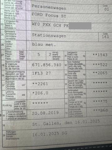 Ausstattung Serienaustattung Airbag Fahrer und Beifahrerseite Sitzheizung vorne Elektrische Fensterheber vorne + hinten Aussenspiegel elektrisch verstellbar und heizbar TCS Elektronische Traktionskontrolle Sportfahrwerk Seitenairbag Fahrer und Beifahrerseite Zentralverriegelung mit Fernbedienung Recaro-Sportsitze Park-Distanz-Sensor vorne + hinten Alarmanlage mit Innenraumüberwachung Bremsassistent EBA Kindersitz-Vorbereitung Isofix Heckspoiler gross Zwei Zonen-Klimaautomatik Rückfahrkamera Vorhangairbags ESP/ ABS Tempomat mit Geschwindigkeitsbegrenzer Dachreling schwarz Garantie 3 Jahre/ 100’000 km Vordersitze elektrisch verstellbar Passformteppiche vorne und hinten Mittelarmlehne hinten/ 2 Getränkehalter HSA Berganfahrassistent Sitzbezüge in Stoff/ Leder Licht- und Regensensor/ Innensp. aut. abblendbar Reifendruck-Sensoren TPMS Reifenreparatur-Kit Deaktivierung Beifahrerairbag Stop + Start System LED-Scheinwerfer LED Tagfahrlicht Rücksitze umklappbar 60/40 Aussenspiegel elektrisch einklappbar Keine Gewähr auf die Angaben der Serienausstattungen LED-Nebelscheinwerfer Sportlenkrad in Leder (unten abgeflacht) Leichtmetallfelgen 19″ 5-Doppelspeichen Lendenwirbelstützen elektr. für Vordersitze Navigationssystem mit DAB+ Ottopartikelfilter FordPass Connect Sonderausstattung Ausstattung |
