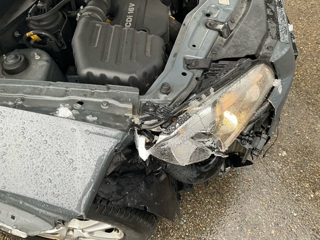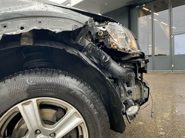 Front Front rechts eingedrückt. Frontblech/Maskenblech eingedrückt. Radhaus vorne rechts eingedrückt / gestaucht. Fahrzeugvorbau verschoben. |