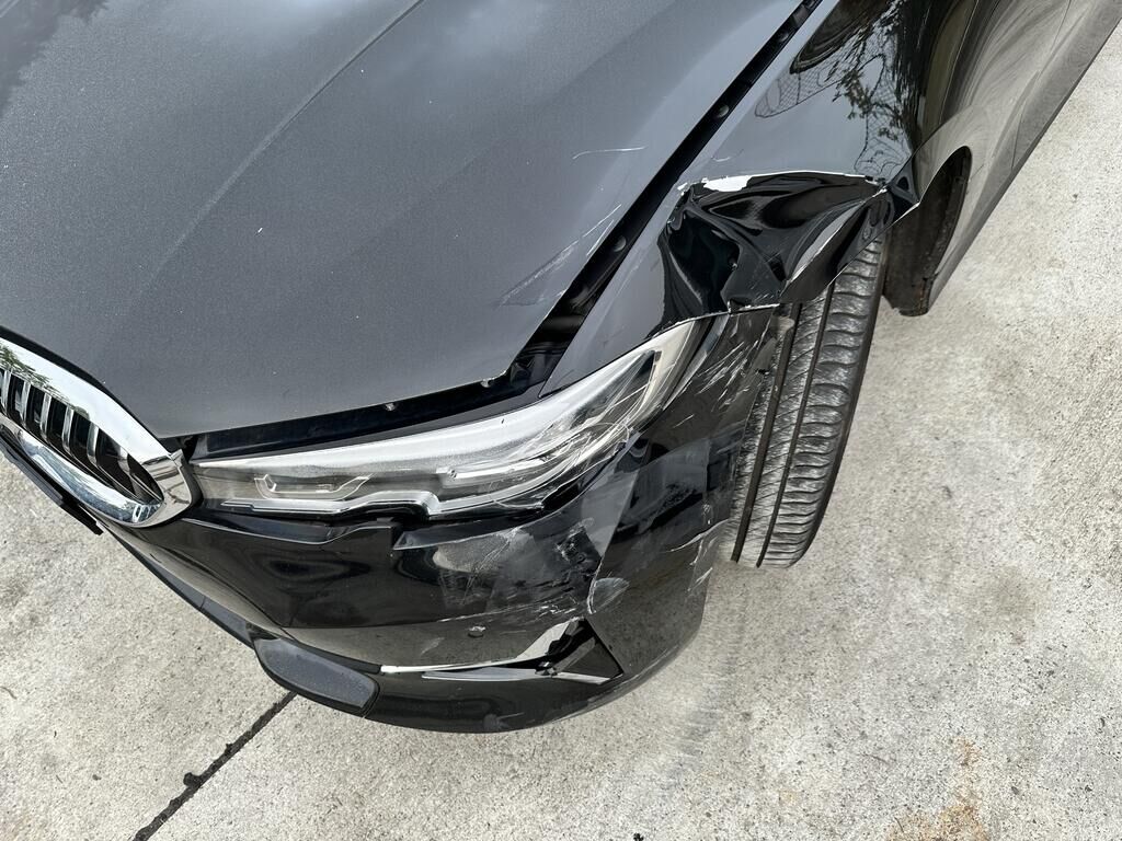 Durch Anprall wurde der Kotflügel vorne links, Stossfänger vorne, Scheinwerfer links, Lenkung und die Radaufhängung vorne links deformiert.
