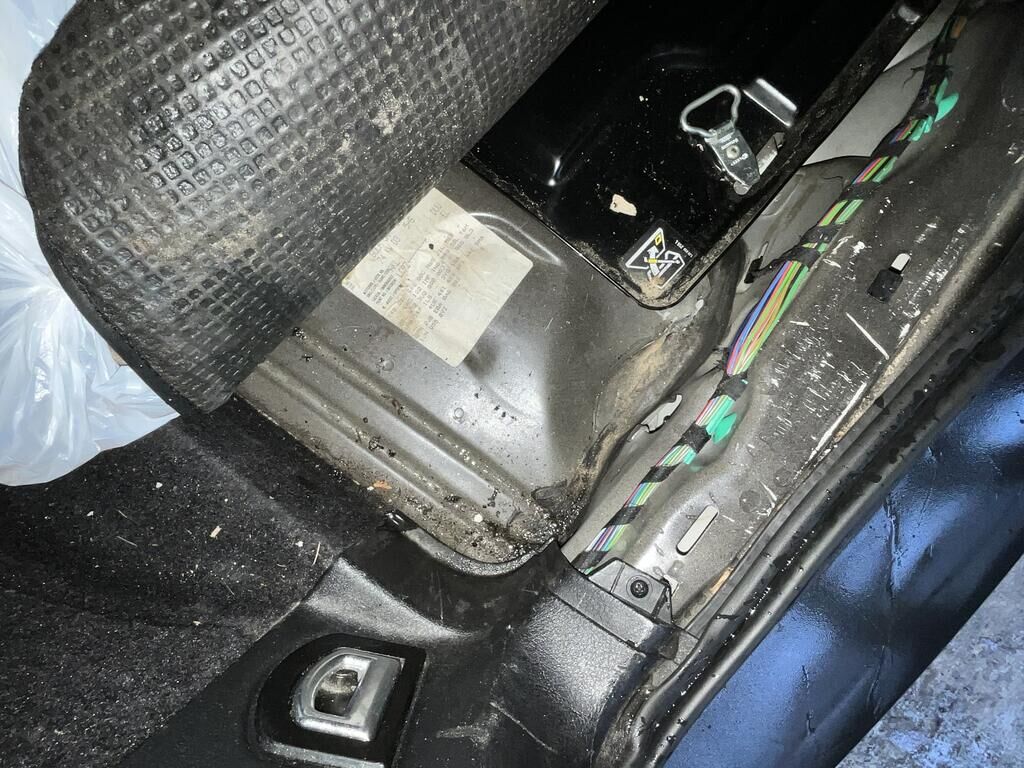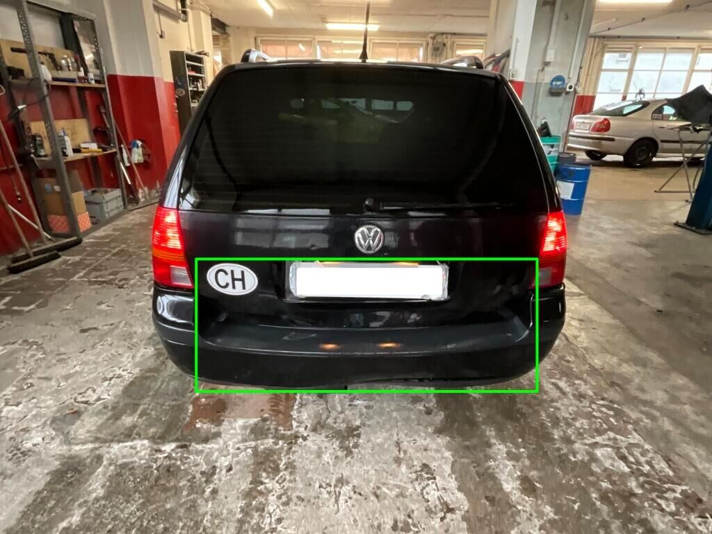 Pare-chocs, spoiler, attelage, jupe arrière, plancher, hayon et renfort endommagés.