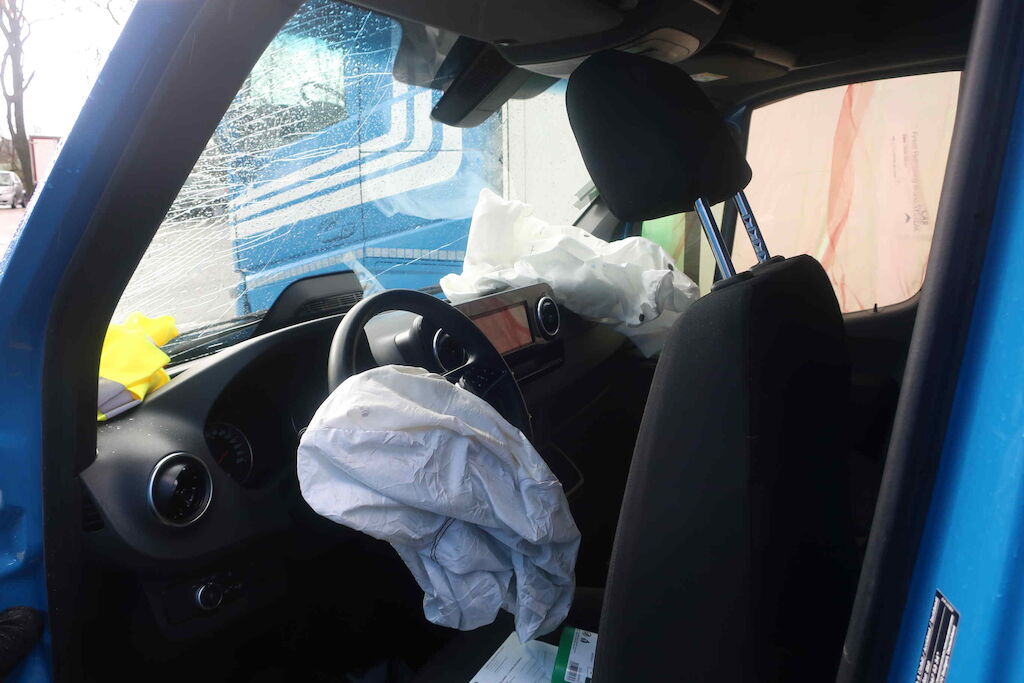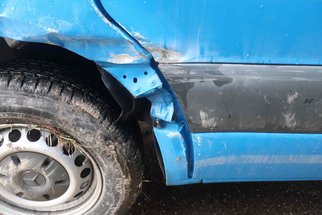 Kabine deformiert,Aufbau links gerissen. Radaufhängung vorne def.