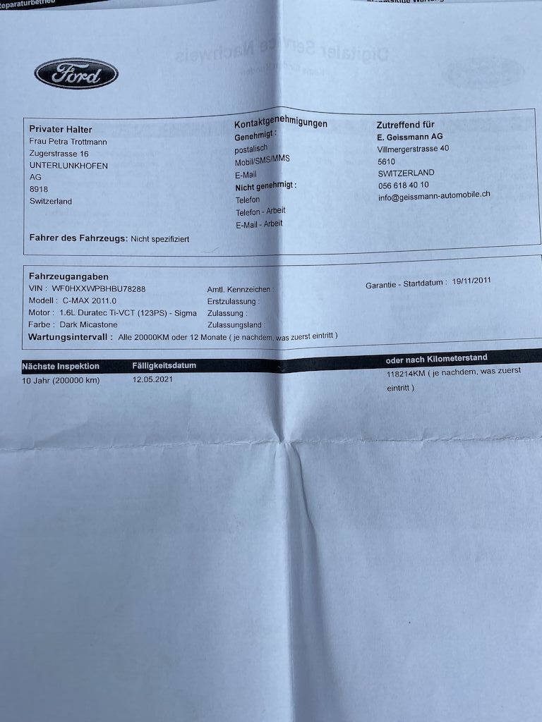 | Tipo | Grand C-Max 1.6Ti-VCT 125 Carving |