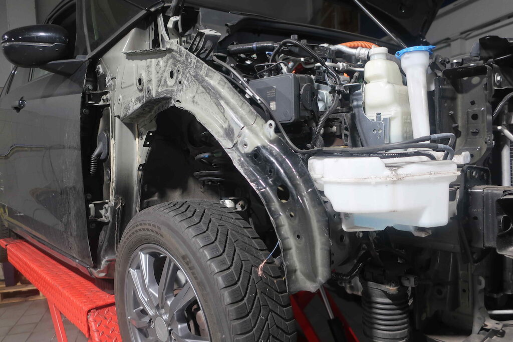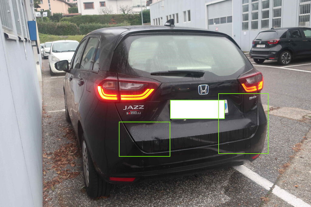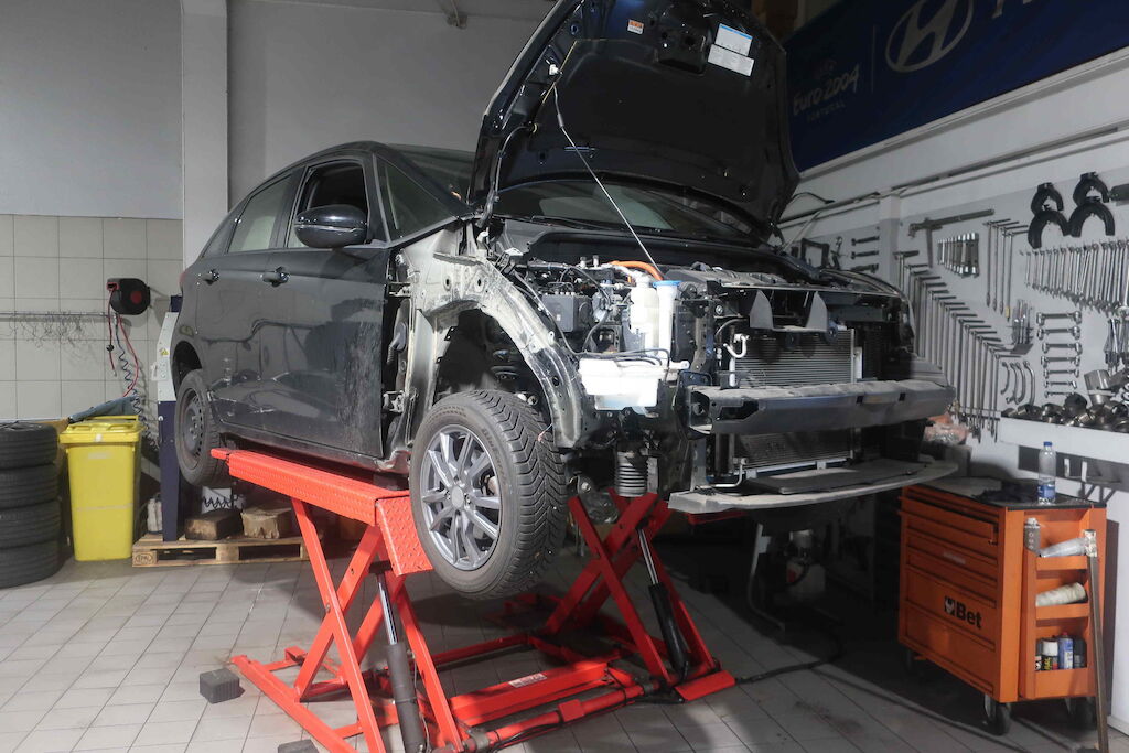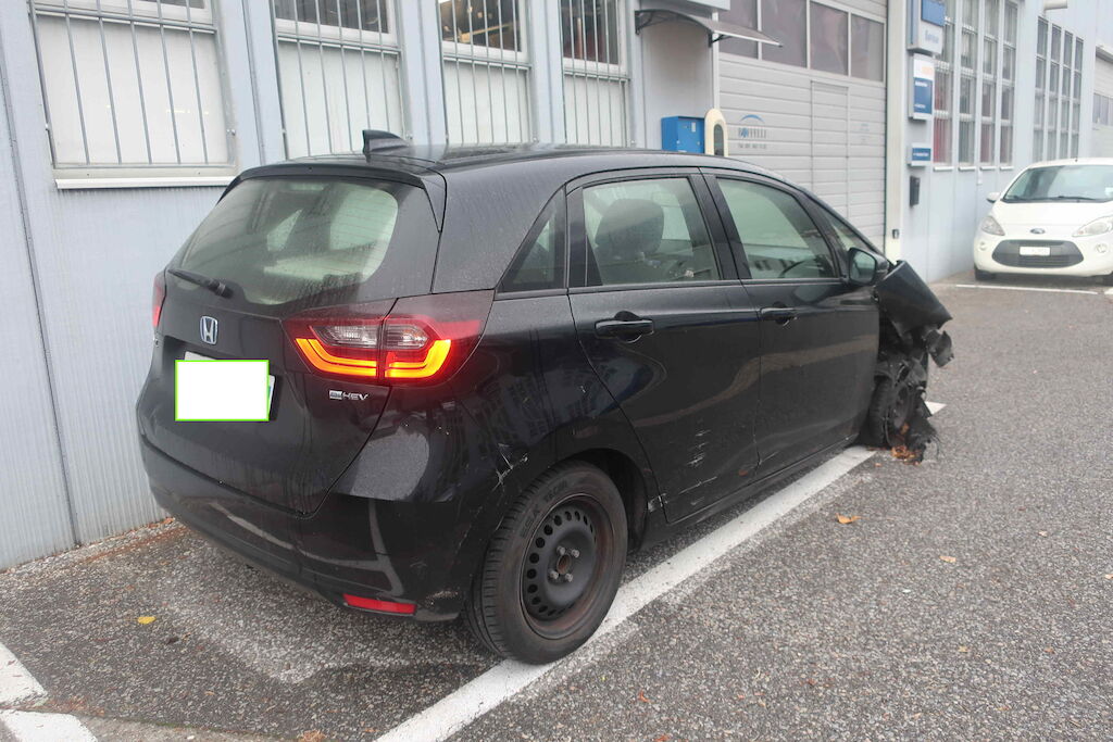 Fianco destro danneggiato compreso anche parte meccanica ruota anteriore, tetto piegato e portellone posteriore danneggiato