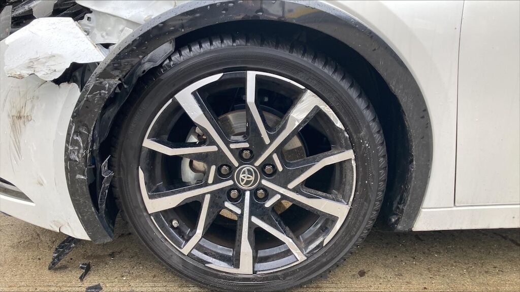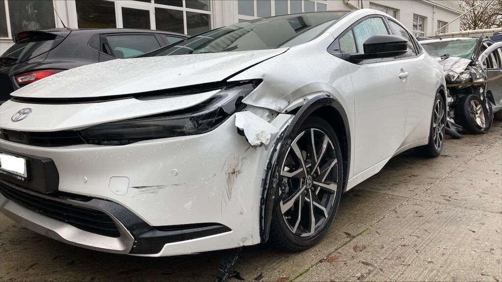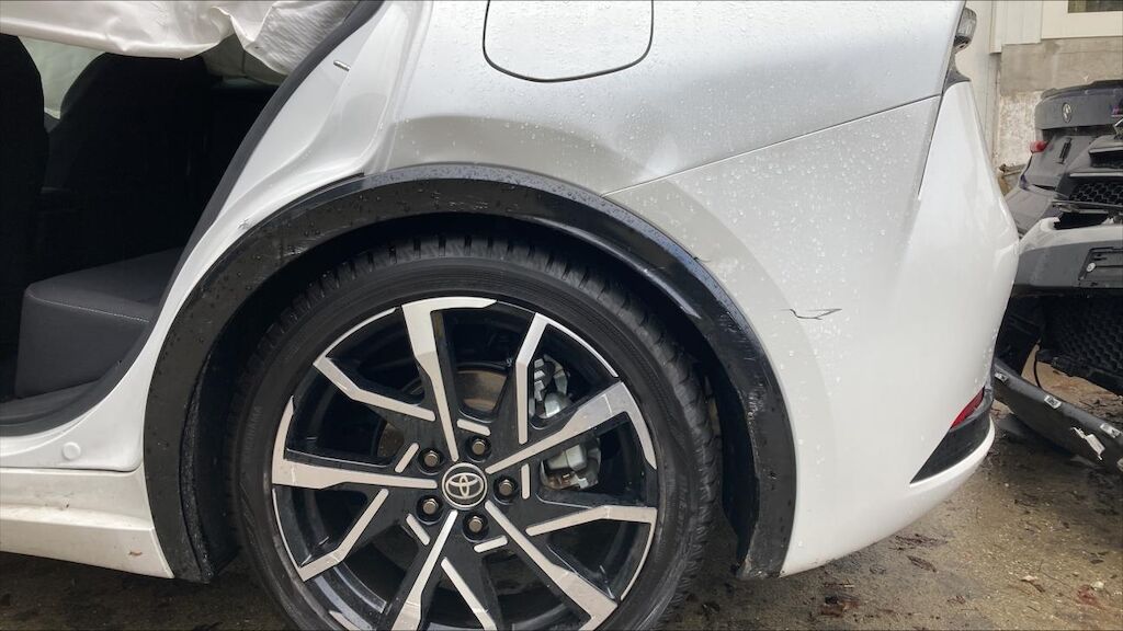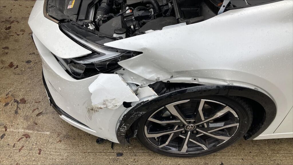Zone avant gauche: phare, par choc, aile, renfort d’aile, tôle frontale, aile enfoncés, jante abîmée, mécanique refoulée. Zone arrière gauche: porte et aile enfoncées, jante marquée, par choc cassé.
