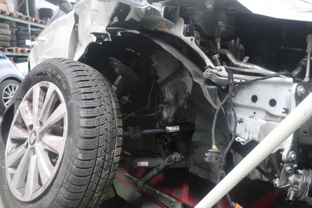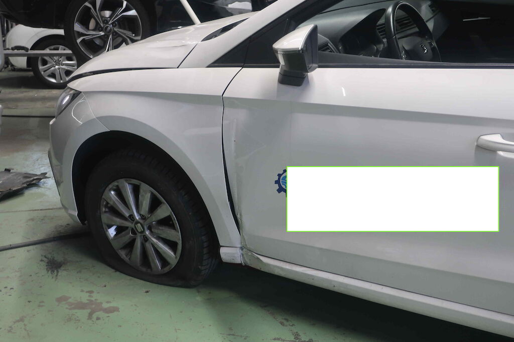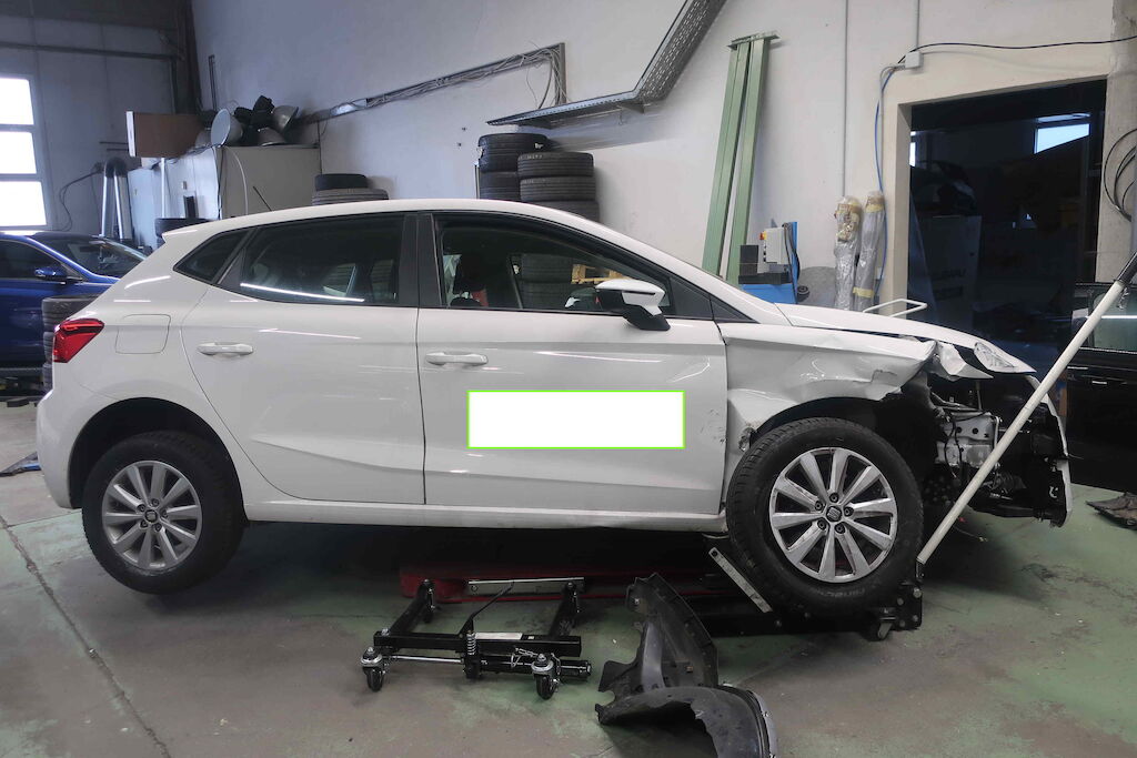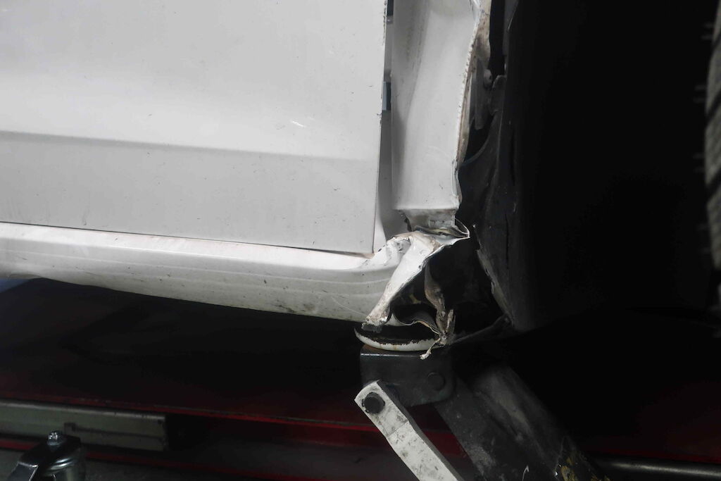 Forte colpo alla parte meccanica della ruota destra, porta sinistra piegata e i due sottoporta