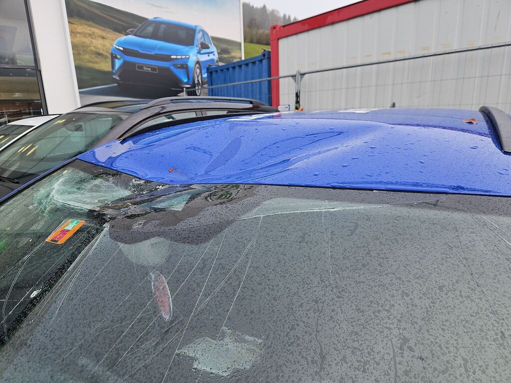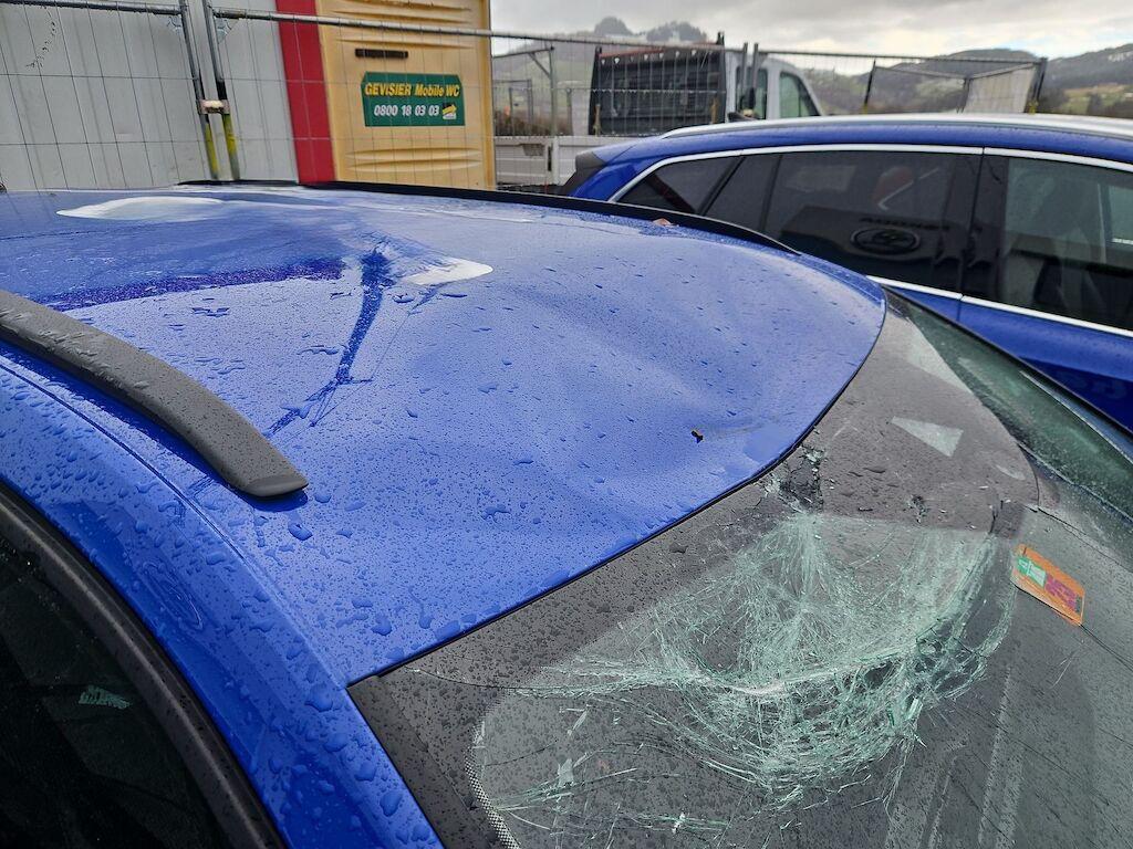 Kollisionsschaden, Aufprall in Fahrzeugfront rechts, Beschädigung von Rad vorne rechts, Kotflügel, Schweller, Frontscheibe, Dach sowie diversen Anbauteilen.
