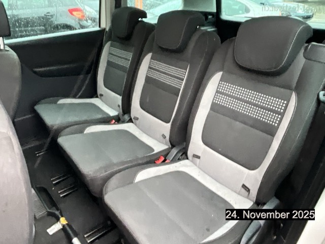 12 Volt-Steckdose im Laderaum, 12-Volt-Steckdose vorne, 3 Einzelsitze in der 2 Reihe, 3 Speichen-Lederlenkrad, 3-Punkt-Sicherheitsgurte auf allen Plätzen, Abblendlichtausschaltverzögerung ‘Follow me home’, Ablagefach, Ablagefach im Dachbereich, Abschliessbares Handschuhfach, Airbag: Airbag Beifahrer deaktivierbar, Airbag: Airbag Fahrer und Beifahrer, Airbag: Window-Kopfairbags, Aktivkohlefilter, Antiblockiersystem (ABS), Antriebsschlupfregelung (ASR), Applikationen Chrom, Aussenspiegel in Wagenfarbe, Aussenspiegel rechts und links beheizbar und elektrisch verstellbar, Auto-Hold-Funktion, Befestigungsösen im Laderaum, Beide Make up-Spiegel beleuchtet, Beifahrersitz umklappbar, Brillenablage, Cupholder, Dachreling schwarz, Drehzahlmesser, Einstellbare Lendenwirbelstütze für den Fahrersitz, Elektrische Kindersicherung, Elektronische Parkbremse, Elektronisches Stabilitäts-Programm ESP, Gurtkontrolle, Handschuhfach gekühlt, Heckscheiben-Wisch-/Waschanlage mit, Heckscheibenheizung, ISOFIX Kindersitzvorrichtung, Innenlicht-Abschaltverzögerung, Innenspiegel automatisch abblendbar, Klapptische an den Rückenlehnen der Vordersitze, Klima: Pollenfilter (Staubfilter), Klimaanlage halbautomatisch Climatic, Knie-Airbag für Fahrer, LED Blinker im Aussenspiegel, Lackierung: Uni-Lackierung, Ladekantenschutz in Kunststoff, Laderaumabdeckung, Leichtmetallräder (Memphis) 6,5x16J, Lenkrad: Lenkrad längs- und höhenverstellbar, Leseleuchten hinten, Leseleuchten vorne, Licht: Coming-home-Funktion, Licht: Drittes Bremslicht, Licht: Fahrlichtautomatik, Media: Multifunktionsanzeige, Mittelarmlehne längs- und höhenverstell- bar, Mittelarmlehne vorne, Nebelscheinwerfer inkl. statischem Kurvenfahrlicht, Partikelfilter und Oxydationskatalysator, Polster: Stoff-Ausstattung, Radio/CD RCD 310 mit MP3, Raucherpaket, Regensensor für Scheibenwischer vorne, Schalthebelknauf in Leder, Scheibenwischer vorne mit Intervall, Schiebetüren links und rechts, Schublade unter den Vordersitzen, Seitenairbag für Fahrer und Beifahrer, Seitenverkleidung mit Ablagefach, Sequentielles 6-Gang-Getriebe mit Automatikfunktion, Servolenkung, Sitze: Beifahrerlehne umklappbar, Sitze: Beifahrersitz höhenverstellbar, Sitze: Fahrersitz höhenverstellbar, Sportsitze vorne, Start/Stop-Funktion, Staufach, Stossstangen in Wagenfarbe, Tageskilometerzähler, Tagfahrlicht, Tempomat, Veloursfussmatten vorne und hinten, Verbandskasten, Warnblinkautomatik bei Vollbremsung, Wegfahrsperre elektronisch, Wärmeschutzverglasung, Zentralverriegelung mit Fernbedienung