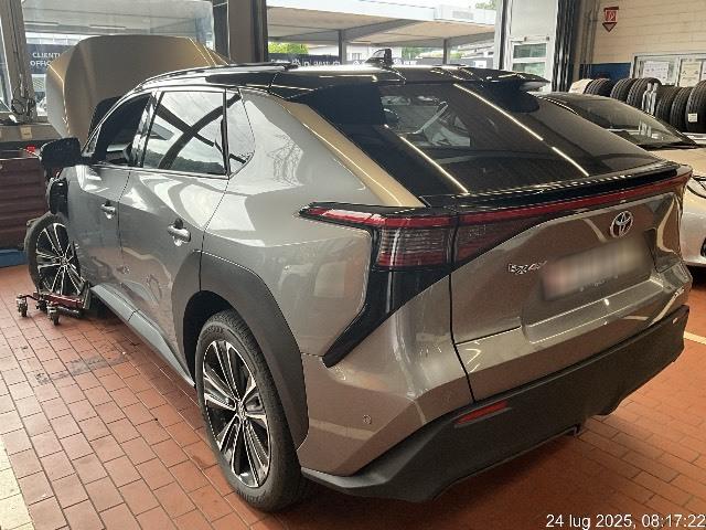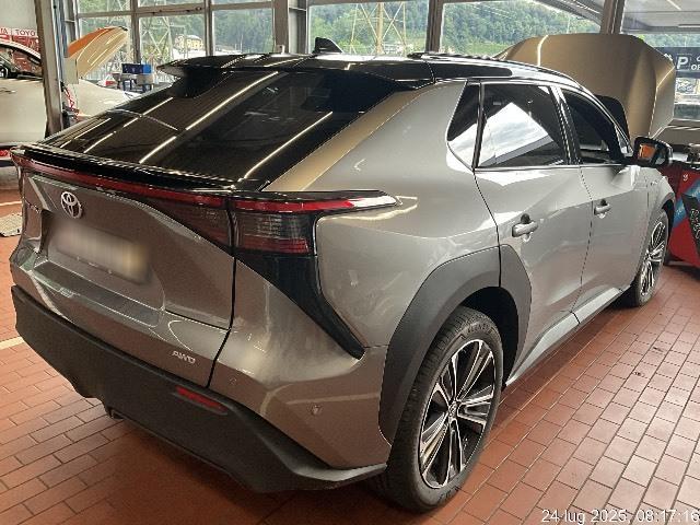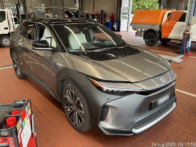 Elektrische Feststellbremse, Elektrische Fensterheber mit Auf- und Abwärtsautomatik vorne und hinten, Zentralverriegelung mit Fernbedienung, Assist: Rückfahrkamera, Lichtautomatik (ALC), Sitze: 2. Sitzreihe, im Verhältnis 60:40 manuell umklappbar, Airbag: Seiten- und Kopfairbags vorne und hinten, Assist: Pre Collision System mit Abbiege- und Notlenkassistent (PCS), Sitze: Beifahrersitz 6 -fach manuell verstellbar, Kopfstützen vorne höhenverstellbar, Innenspiegel automatisch abblendbar, Assist: Adaptiver Tempomat (ACC), Heckscheibenwischer, Bodenteppiche, Licht: Multi LED-Scheinwerfer mit adaptivem Fernlicht-Assistent (AHS), Media: Smartphone Integration: Apple CarPlay ohne Kabel / Android Auto mit Kabel, Media: 6 Lautsprecher, Polster: Teilleder, Wärmepumpensystem für Klimaanlage/Heizung, Ladekabel 5m (Mode 3, Type 2, 32A), Lenksäule manuell höhenverstellbar und längsverstellbar, Elektronisches Stabilitäts-Programm (ESP), Smart Entry-/Start-System, Assist: Spurhalteassistent (LTA), Türgriffe aussen Wagenfarbe, Garantie: 3 Jahre/100’000 km – Lackgarantie 3 Jahre/Kilometer unbegrenzt – Duchrostungsgarantie 12 Jahre/Kilometer unbegrenzt, Media: 2 USB-Anschlüsse vorne (USB-C), Heckscheibe und hintere Seitenscheiben getönt, Media: USB-Anschlüsse vorne (1x USB-A), Airbag: Airbag Fahrer und Beifahrer, Licht: Ambientebeleuchtung Innenraum, Licht: Follow me home Lichtfunktion, Lackierung: Uni-Lackierung, Media: 7″ Multiinformationsdisplay (Tachodisplay), Sitze: Fahrersitz mit Lendenwirbelstütze elektrisch verstellbar, Räder: Reifendruck-Warnsystem (TPWS), Regensensor, Assist: Erweiterter Notbremsassistent (EDSS), Drehzahlmesser, Automatische Türverriegelung, Heckklappe elektrisch, Licht: LED-Tagfahrlicht, Assist: Berganfahrhilfe (HAC), Räder: Reifenreparatur-Set, Kühlergrill schwarz, Sitze: Fahrersitz 8-fach elektrisch verstellbar, Licht: Drittes Bremslicht, Getriebe: Stufenloser Automat, Assist: Verkehrszeichenerkennung (RSA), Aussenspiegel in schwarz, Licht: Frontscheinwerfer LED, Media: MyT App EV Features (10 Jahre gratis) – Batterie Ladestand, Einstellung der Ladezeit, öffentliche Ladestationen finden, Media: Toyota Smart Connect+ (T2) mit 12.3″ HD Bildschirm, integriertes Navigationssystem, Licht: Innenraumbeleuchtung LED, Assist: Parksensoren vorne und hinten mit automatischer Bremsfunktion (ICS / PKSB), Media: MyT App Connected Services (10 Jahre gratis) EV-Trainer Abrufen von Parkposition, Fahrzeugstatus, Warnleuchten, Inspektionserinnerung, Heckscheibenheizung, Räder: 18″-Leichtmetallfelgen, 235/60-R18-Reifen, Media: MyT App Smart Connect Pack (4 Jahre gratis) – Fernsteuerung von Klimaanlage, Sitz-/Lenkrad-/Frontscheibenheizung, 3-Punkt-Sicherheitsgurte auf allen Plätzen, Antiblockiersystem (ABS), Licht: Nebelschlussleuchte, Windschutzscheibe beheizt, Aussenspiegel elektrisch einklappbar, verstellbar und beheizt, Lenkrad: Lenkrad mit Bedienelementen, Kopfstützen hinten, Heckspoiler in Wagenfarbe, Kabellose Ladestation für mobile Geräte (Qi), Lenkrad: Lenkrad längs- und höhenverstellbar, Licht: LED Nebelscheinwerfer, Klima: 2-Zonen-Klimaautomatik, Licht: LED Heckleuchten, Bordcomputer, Wegfahrsperre elektronisch, Assist: Elektronische traktionskontrolle, Media: Radio, DAB+ und Bluetooth, Media: 2 USB-Anschlüsse hinten (USB-C), Servolenkung