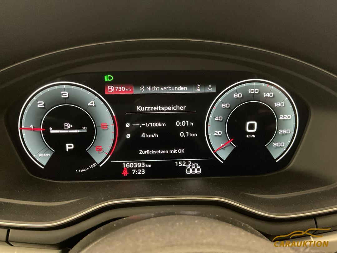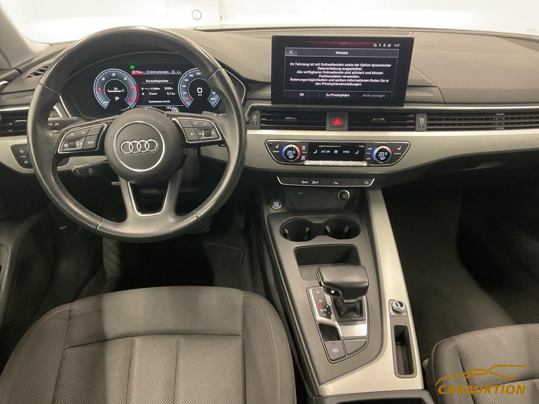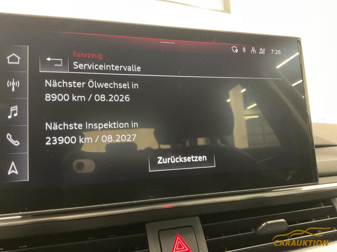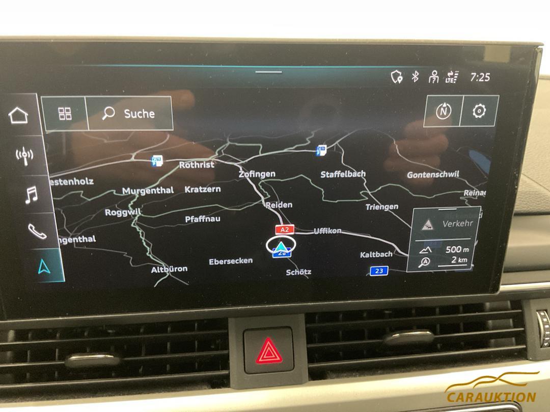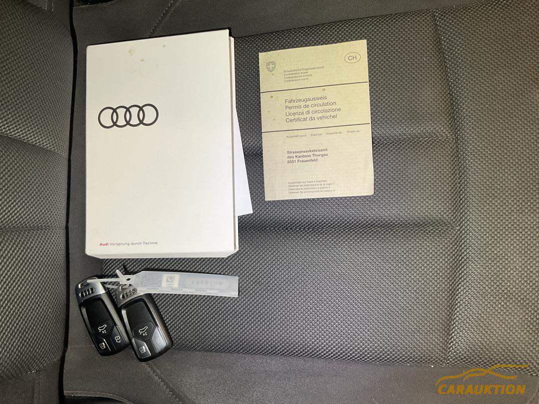 Gurtkontrolle, Media: Bluetooth-Schnittstelle, Einstiegsleisten mit Aluminiumeinlegern vorn, 3-Punkt-Sicherheitsgurte auf allen Plätzen, Kofferraumbodenmatte, Dekor: Dekoreinlagen Diamantlack silbergrau, Modellbezeichnung gemäss neuer Leistungskennzeichnung, Wegfahrsperre elektronisch, Dachhimmel in Stoff, Gepäckraumklappe elektrisch öffnend und schliessend, Lenkrad: Sportkontur-Lederlenkrad im 3-Speichen-Design unten abgeflacht mit Multifunktion plus, Licht: Licht- und Regensensor, Verbandmaterial,Warndreieck und Warnveste, Fahrer-Informationssystem mit Farbdisplay, Partikelfilter und Oxydationskatalysator, Bordwerkzeug, Klima: 3-Zonen-Klimatisierungsautomatik, Klima: Klimatisierungsautomatik, Sitze: Vordersitze manuell verstellbar, Media: MMI Radio plus, Dachreling schwarz, Wärmeschutzverglasung, Licht: LED Heckleuchten, Media: Digitaler Radioempfang (DAB), Sitze: Normalsitze, Heckscheibenheizung, Fussmatten vorne und hinten, Räder: Reifenreparatur-Set (Tire Fit), Elektronische Parkbremse, Sitze: Rücksitze geteilt abklappbar, Licht: Nebelschlussleuchte, Elektronisches Stabilitäts-Programm (ESP), Mittelarmlehne vorn in Kunstleder schwarz mit Kontrastnaht in Rot, Fahrwerk: Serienfahrwerk, Licht: LED Scheinwerfer, Funkschlüssel, ohne Safelock, Aussenspiegel in Wagenfarbe, Aussenspiegel rechts und links beheizbar und elektrisch verstellbar, Frontscheibe in Akustikverglasung, Getriebe: 7-Gang- Automat S tronic, Abgasendrohre, Fensterschachtleisten in Schwarz (Gummi), Airbag: Seitenairbags vorne, Wendeladeboden, Rahmenloser Innenspiegel automatisch abblendbar, Audi pre sense city, Assist: Geschwindigkeitsregelanlage inklusive Geschwindigkeitsbegrenzer, Sonnenblende auf Fahrer- und Beifahrerseite, Nichtraucherausführung, Mild-Hybrid, Audi drive select, Media: Audi connect Notruf & Service mit Fahrzeugsteuerung, Kopfstützen vorne höhenverstellbar, 3 Kopfstützen hinten, Airbag: Window-Kopfairbags, Media: MMI Navigationssystem Plus mit MMI touch, ABS, EBD elektronische Bremskraftverteilung, Media: Audi Soundsystem, Räder: Reifendruck-Kontrollanzeige, Klima: Pollenfilter (Staubfilter), Licht: Tagfahrlicht, Servolenkung Elektromechanisch, Dekor: Akzentflächen schwarz matt, Getönte Scheiben, AdBlue-Tank 8 (12 l), Stopp-/Start-System, Audi connect Notruf, Garantie: 2 Jahre ohne Kilometerbegrenzung (ab 1. Inv.), Entfall Modellbezeichnung und Leistungs- / Technologie-Schriftzug, Polster: Stoff-Ausstattung, Media: 8 Lautsprecher, Innenbeleuchtung, Media: Audi Phone Box, Innenspiegel abblendbar