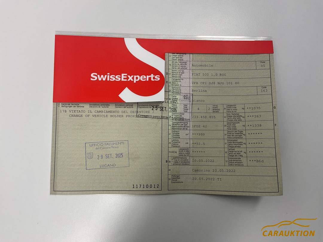 Räder: Reifendruck-Kontrollsystem (TPMS), Zentralverriegelung mit Fernbedienung, Blinker mit Antipp-Funktion, Lackierung: Uni-Lackierung, Gelato weiss mit Allround Linie, Rücksitzlehne geteilt abklappbar, Assist: Bremsassistent (BAS), Make up-Spiegel beleuchtet für Beifahrer, Automatische Türverriegelung während der Fahrt, Licht: Nebelscheinwerfer, Sitze: Höhenverstellbare Kopfstützen vorne, Türgriffe aussen, in Satin Graphite Look, Garantie: Fiat 3 Jahre Garantie, unlimitierte Kilometeranzahl – inkl. Ersatzwagen, Pannenhilfe und Assisten, Pedalerie mit Sollbruchstelle zum Schutz vor Beinverletzungen bei Unfällen, Media: Android Auto/Apple CarPlay, Assist: Anfahrhilfe am Berg (Hill Holder), Media: DAB-Radio (Digital Audio Broadcasting), Getriebe: 6-Gang-Getriebe, Fiat Garantie: 3 Jahre ohne Kilometerbegrenzung (ab 1. Inv.), Licht: Tagfahrlicht mit 500-LED-Signatur, Media: 2 zusätzlich Lautsprecher, Assist: Cruise Control (Tempomat), Katalysator geregelt, Media: Uconnect Touchscreenradio mit 7″-Bildschirm, USB, AUX-IN, Uconnect LIVE, Bluetooth und Audiostreaming, mit digitalem Audioempfang DAB, 2 Lautsprecher, Heckscheiben-Wisch-/Waschanlage, Licht: Follow me home-Lichtfunktion, Media: 7″-TFT-Instrumentendisplay, Licht: Drittes Bremslicht, Aussenspiegel elektrisch verstellbar in Wagenfarbe lackiert, Assist: Antriebsschlupfregelung (ASR), Wegfahrsperre elektronisch, Sitze: Fahrersitz höhenverstellbar, Lenkrad: Lederlenkrad mit 8 Multifunktionstasten für die Audio- und Mobiltelefonbedienung, Sitze: Isofix-Befestigung für Kindersitze auf den Sitzplätzen im Fond, Hybrid Badge, Elektrische Fensterheber vorne, Start/Stop-Funktion, Antiblockiersystem (ABS), Elektrische Servolenkung Dualdrive mit City-Funktion, Airbag: Airbag Fahrer und Beifahrer inkl. Seitenairbags, 12-Volt-Steckdose vorne, Dashboard aus Holz, Elektronisches Stabilitäts-Programm (ESP), Bordcomputer, Airbag: Knie-Airbag für Fahrer, Aussentemperaturanzeige, Fixiertes Glasdach, Lenkrad: Lenkrad höhenverstellbar, Haltegriff für Beifahrer, Licht: Nebelschlussleuchte, Automatische Aktivierung der Warnblinkanlage bei Notbremsung, Drehzahlmesser, Fussmatten, Polster: Sportsitze Stoff, Sitze: Geteilt umklappbare Rücksitzlehne (im Verhältnis 50/50), 2 höhenverstellbare Kopfstützen hinten, Scheibenwischer vorne mit Intervall, Sicherheitsgurte vorne mit Gurtstraffern, Gurtkraftbegrenzung, Gurtschloss-Sensor, Assist: Speed Limiter, Elektronischer Bremskraftverteilung EBD, Klima: Klimaautomatik mit Pollenfilter, Airbag: Kopfairbags vorne, Feuerschutzsystem F.P.S. (Unterbrechung der Kraftstoffzufuhr bei einem Aufprall), Aussenspiegel rechts und links beheizbar und elektrisch verstellbar, Sitze: Beifahrersitz mit Tasche auf der Rückseite, Airbag: Airbag Beifahrer deaktivierbar, Sitze: Sitze vorne und hinten mit Anti-Submarining Struktur