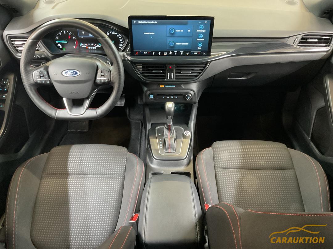 Ford Power-Startfunktion (schlüsselfreies Starten), Innenbeleuchtung vorn und hinten mit LED-Technik und Kartenleselampen vorn, Licht: LED Scheinwerfer – LED-Abblendlicht, – LED-Fernlicht, – LED-Tagfahrlicht inkl. integrierte LED-Blinkleuchten vorn, Dachreling schwarz, Sitze: Fahrersitz, manuell höhenverstellbar, mit einstellbarer Lendenwirbelstütze, Innenspiegel automatisch abblendbar, Lenkrad: Schaltwippen am Lenkrad, Assist: Post-Collision-Assist, Licht: Nebelschlussleuchte, Variabler Kühlerlufteinlass, Start-Stop-System, Katalysator geregelt, Lackierung: Uni-Lackierung, Gepäckraumbeleuchtung, Sitze: Rücksitzlehne, umklappbar, 60 : 40 geteilt, Wegfahrsperre elektronisch, Dachhimmel aus Webstoff, schwarz, Licht: LED-Abbiegelicht, statisch inkl. integrierter LED-Nebelscheinwerfer-Funktion, Klima: Klimaanlage mit automatischer Temperaturkontrolle (2-Zonen-Klimaautomatik) – für Fahrer- und Beifahrerseite getrennt regelbar, Garantie: Ford Garantie 2 Jahre Werksgarantie (unbeschränkte Kilometerleistung), Lederschaltknauf, Scheibenwischer mit Regensensor, Ford Easy Fuel (Komfort-Tankverschluss und Fehlbetankungsschutz), Getriebe: 7-Gang-Automatikgetriebe, Licht: LED Heckleuchten, Räder: Reifendruckkontrollsystem, Fahrwerk: Sportlich abgestimmtes Fahrwerk, Garantie: Garantie 12 Jahren gegen Durchrosten (ab 1. Inv.), Sitze: Beifahrersitz, 2-fach einstellbar, Handschuhfach, beleuchtet, 12-Volt-Anschluss im Gepäckraum, Servolenkung, elektro-mechanisch (EPAS-Electric Power Assisted Steering), Media: Ford SYNC 4 inkl. Ford Navigationssystem mit AppLink, 13″-Touchscreen und DAB/DAB+ – 6 Lautsprecher – Android Auto und Apple CarPlay – Bluetooth-Freisprecheinrichtung und -Audiostreaming – Digitales Benutzerhandbuch – Fernbedienung am Lenkrad – Ford Power-Up Software Updates (Over-the-Air-Update Technologie) – Intelligente Vorschlags-Funktionen – Individualisierbare Benutzerprofile – Radio-Player – USB-Anschluss – Sprachsteuerung über Audio und Telefon – Zielführung akustisch und optisch, dynamische sowie cloudbasierte Navigation mit erweitertem Verkehrsinformation, Assist: Intelligenter Geschwindigkeitsbegrenzer mit Tempolimit-Anzeige, Airbag: Beifahrerairbag – Deaktivierung, Dachspoiler in Wagenfarbe lackiert, Sitze: Sportsitze vorn mit verstärktem Seitenhalt, Sitze: ISOFIX-Halterung an den äußeren Sitzplätzen der 2. Sitzreihe inkl. zweier Top Tether – Verankerungspunkte in den Rücksitzen, Polster: Stoffpolsterung – in Anthrazit mit Ziernähten in Rot, Licht: Notbremslicht, pulsierendes Aufleuchten der Bremsleuchten bei starkem Bremsen, Kopfstützen vorn (2) und Kopfstützen hinten (3), höhenverstellbar, Assist: Notruf-Assistent, Lenkrad: Lenkrad längs- und höhenverstellbar, Selektiver Fahrmodus-Schalter, Assist: Antiblockier-Bremssystem (ABS) mit elektronischer Bremskraftverteilung (EBD) – und elektronischem Bremskraftverstärker, FordPass Connect inkl. Live-Traffic-Verkehrsinformation, Licht: Scheinwerfer-Abblendlicht mit Ausschaltverzögerung, Doppelrohr- Auspuffanlage, Licht: Bremsleuchte dritte, Lenkrad: ST-Line Design, unten ablageflacht und mit roten Ziernähten in Sensico Leder-Optik, Gepäckraumabdeckung, Assist: Pre-Collision-Assist inkl. Auffahrwarnsystem (FA – Forward Alert) mit Fussgänger- und Fahrraderkennung, Außenspiegel, in Wagenfarbe lackiert, elektrisch einstellbar und beheizbar mit integrierten Blinkleuchten – zusätzlich elektrisch anklappbar, Befestigungspunkte hinter der 2. Sitzreihe für die Montage des Sicherheitstrennnetz, Assist: Elektronisches Sicherheits- und Stabilitätsprogramm (ESP) mit Sicherheits-Bremsassistent (EBA – Emergency Brake Assist) und Traktionskontrolle, Electronic Shifter, Drehschalter für Automatikgetriebe, Fahrerinformationssystem mit Bordcomputer, farbig – 10,7 cm Bildschirmdiagonale, Umrandung der Seitenscheiben in Schwarz, Warnsystem für nicht angelegten Sicherheitsgurt vorn und in der 2. Sitzreihe, Mittelkonsole “Premium” vorn mit verschiebbarer Armauflage, Getränkehalter inkl. Abdeckung,, Ablagefächern, 12-Volt- und USB-Anschluss, MyKey-Schlüsselsystem (individuell programmierbarer Zweitschlüssel), Assist: Berganfahrhilfe (Hill Launch Assist), Zentralverriegelung mit Fernbedienung und Gepäckraumfernentriegelung, Räder: Reifen-Reparatur-Set (bei Verwendung bis max. 80 km/h zulässig), Verzurrösen im Gepäckraum, Assist: Feststellbremse, elektrisch, Assist: Park-Pilot System vorne und hinten, Assist: Geschwindigkeitsregelanlage, Intelligentes Sicherheits-System (IPS – Intelligent Protection System) – Frontairbag für Fahrer und Beifahrer – Kopf-und Schulterairbags vorn und hinten – Seitenairbag für Fahrer und Beifahrer – Sicherheitsgurtstraffer und -gurtkraftbegrenzer vorn und an den äußeren Sitzplätzen der 2. Sitzreihe – 3-Punkt-Sicherheitsgurte auf allen Plätzen, vorn höhenverstellbar – Sicherheitspedalerie, Heckscheiben-Wisch-/Waschanlage, Body Styling Kit – Kühlergrill, ST-Line-Design – Seitenschweller, in Wagenfarbe lackiert – Stossfänger vorn und hinten, ST-Line-Design, Sonnenblende Fahrer und Beifahrerseite, Teppichfussmatten vorne, Elektrische Fensterheber vorne + hinten, Heckscheibenheizung, Ford EcoCoach (Effizienzanzeige für umweltschonende Fahrweise), Licht: Scheinwerfer-Assistent mit Tag-/Nacht-Sensor