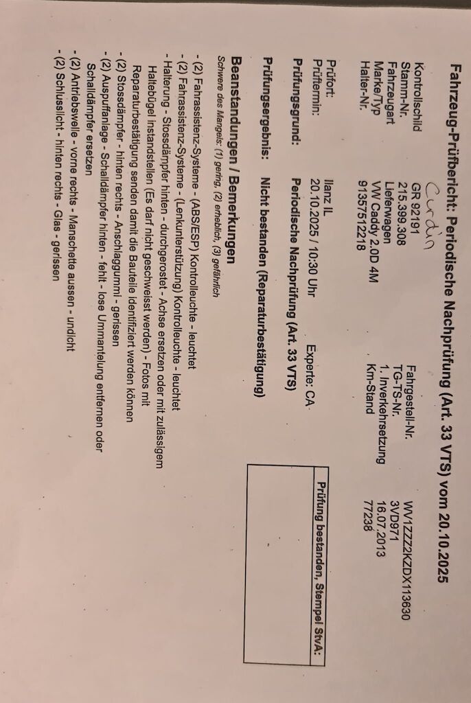 Siehe Foto Mängelliste