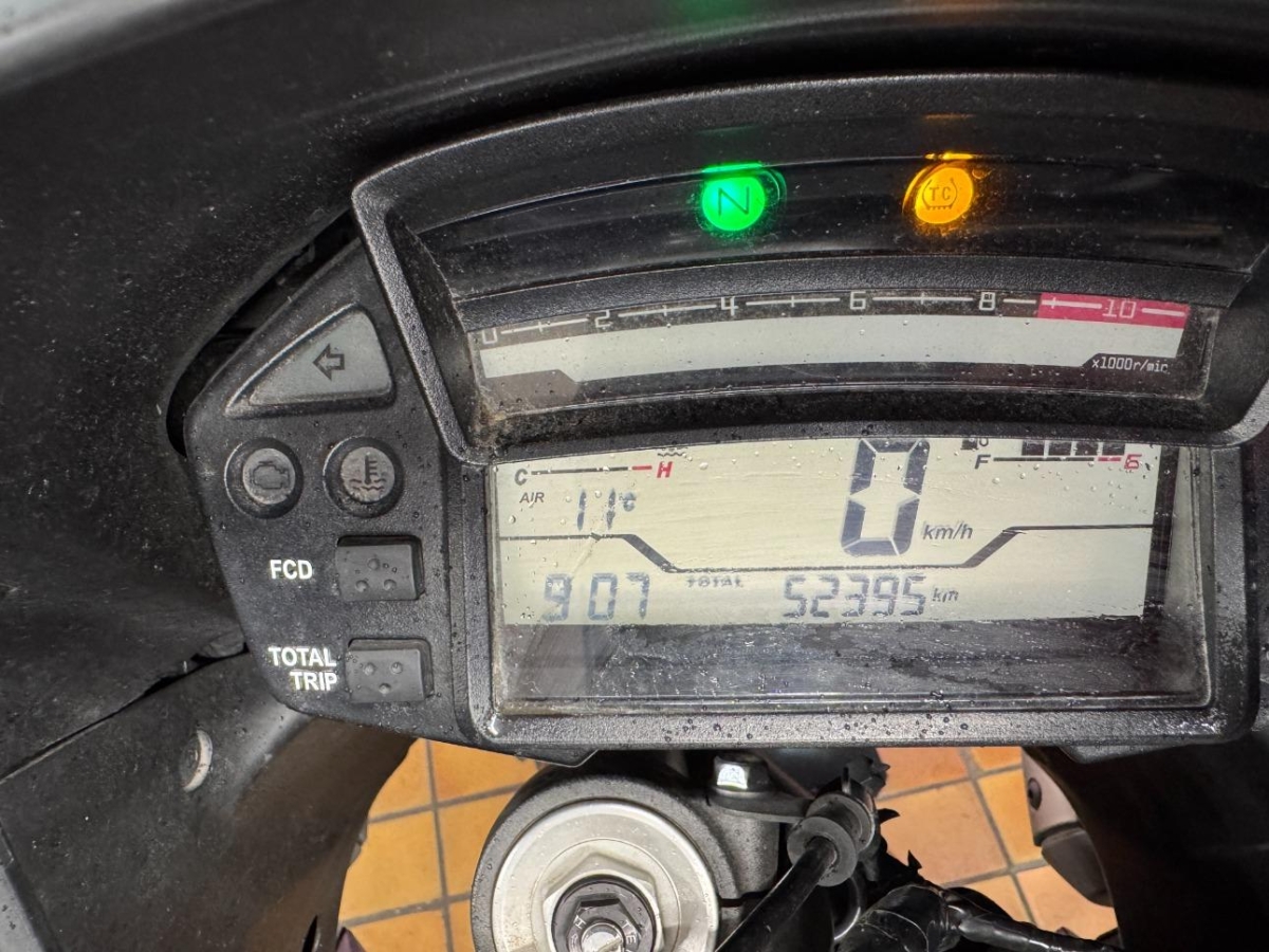 Armaturen, Aussenspiegel links, Front, Gabelholm, Getriebe, Kühler, Motor, Rad vorne, Rahmen, Scheinwerfer, Schutzblech vorne, Tank, Verschalungen vorne