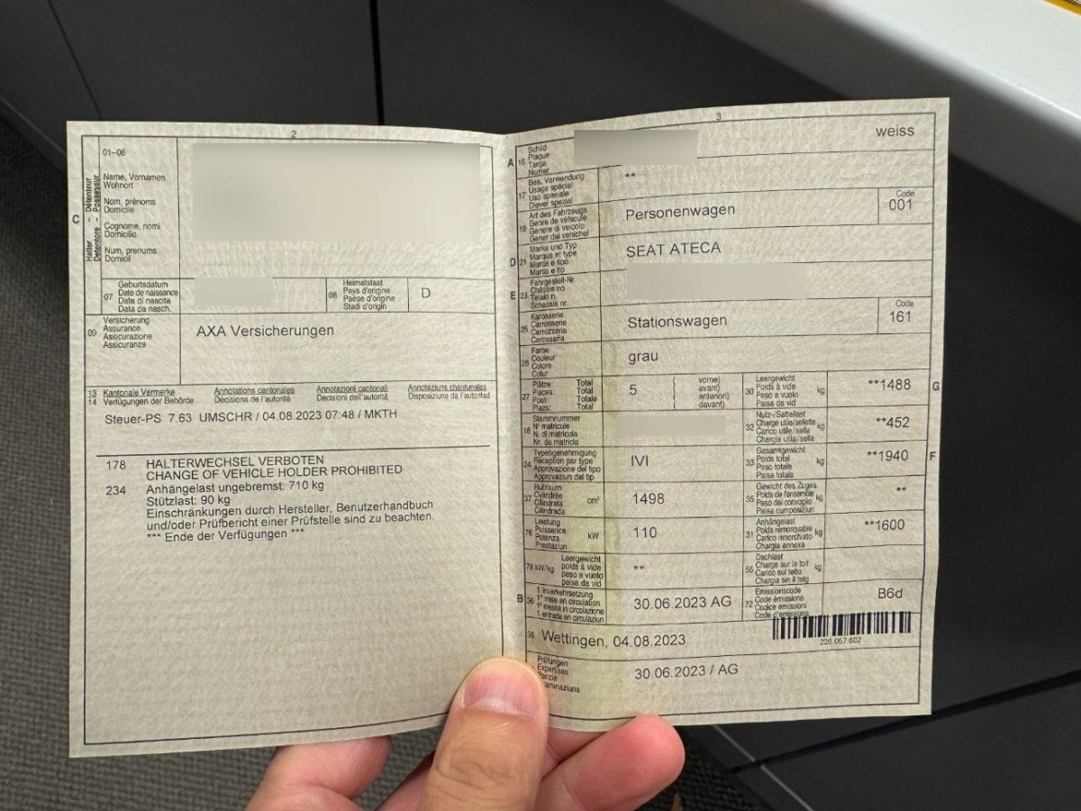 | Fahrzeugausweis | Vorhanden |
