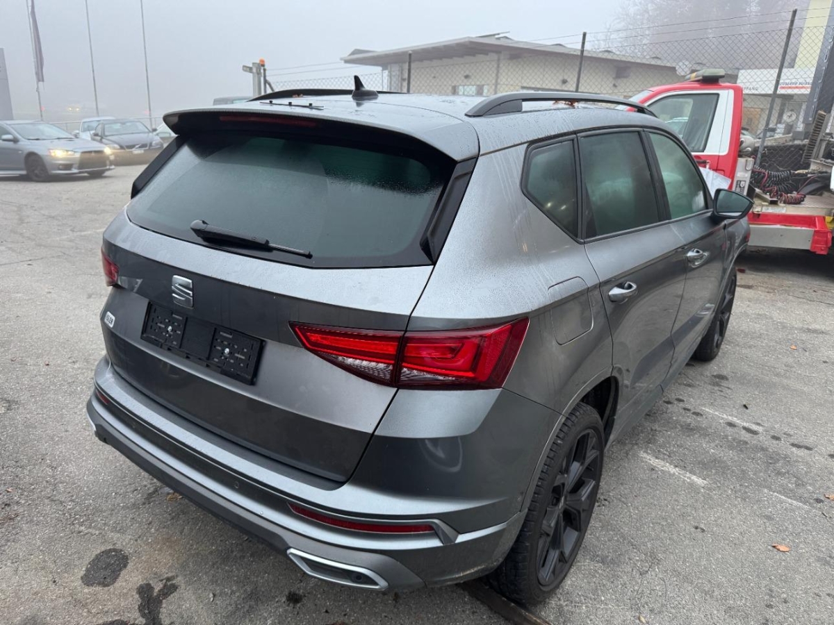 Paket: Winterpaket (Lenkrad: Lenkrad Beheizbar, Sitze: Vordersitze heizbar), Paket: Fahrerassistenzpaket M für Media System (Assist: Multifunktionskamera, Assist: Automatische Distanzregelung ACC, Assist: Speedlimiter, Licht: Fernlicht-Assistent, Assist: Spurhalteassistent Lane Assist), Assist: Parklenkassistent (Assist: Einparkhilfe vorne und hinten mit optischer Anzeige), Media: SEAT Connectivity Box Wireless Charger, Polster: Sitzbezüge in Dinamica ‘black’ Sitzmittelbahnen und -wangeninnenseiten in Dinamica, restliche Bezüge in Stoff, Media: SEAT Navigationssystem -9.2″ 3D Infotainment (MIB3), -SEAT FullLink , -Sprachsteuerung, -Kartenmaterial “Europa”, -SEAT Connect Remote & Access für Navigationssystem (Erstes Jahr kostenlos), -SEAT Connect Online Infotainment für Navigationssystem (Erstes Jahr kostenlos), Lackierung: Metallic-Lackierung, SEAT Garantie: Hersteller-Garantieverlängerung für das 3., 4. und 5. Jahr / max.100’000 km, Anhängevorrichtung abschwenkbar, Räder: Leichtmetallräder 8J x 19″, “EXCLUSIVE” 36/10 235/40 R19, Variabler Ladeboden