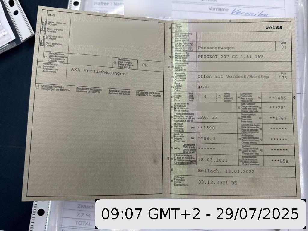 Seitenaufprall-Schutzsystem, Elektronisches Stabilitäts-Programm (ESP), Bordcomputer, Airbag: Seitenairbag für Fahrer und Beifahrer, Notbremslicht (EBS), Make up-Spiegel rechts, Überrollbügel in Chrom, Airbag: Airbag Beifahrer deaktivierbar, Radio/CD-Player mit 6 LS und MP3 Anschluss im Handschuhfach inkl. Fernbedienung, Licht: Nebelscheinwerfer, Elektrohydraulisches Variodach, Gurtstraffer vorne, Antriebsschlupfregelung (ASR), Make up-Spiegel links, Antiblockiersystem (ABS), Servolenkung geschwindigkeitsabhängig, Aktive Fuss-Stütze, Verchromtes Auspuffendrohr, Licht: Drittes Bremslicht, Sport-Lederlenkrad, Bremsassistent (BAS), Pedalerie mit Aluminiumauflage, 4-Stufen-Automat sequentiell, Licht: Abblendlichtausschaltverzögerung ‘Follow me home’, Zentralverriegelung mit Fernbedienung, Aktive Rückenlehnen und Kopfstützen, Vordersitze höhenverstellbar, Licht: Nebelschlussleuchte, Aussenspiegel in Wagenfarbe, Airbag: Fahrer und Beifahrer, Sportsitze vorne, Katalysator geregelt, Gurtkontrolle, Aussenspiegel elektrisch einklappbar, Aussenspiegel rechts und links beheizbar und elektrisch verstellbar, Drehzahlmesser, Elektrische Fensterheber vorne + hinten, Heckscheibenheizung, Kindersitzvorrichtung ISOFIX Beifahrerseite, Klima: 2-Zonen-Klimaautomatik, Knie-Airbag für Fahrer, Kofferraumbeleuchtung, Kühlergrill verchromt, Lackierung: Metallic-Lackierung, Ledersitze, Lenkrad: Lenksäule in Höhe und Tiefe einstellbar, Leuchtweitenregulierung von innen, Lichtwarnsummer, Oelstandsanzeige, Park Distance Control hinten, Rammschutzleisten, Reifenreparatur-Set mit Kompressor, Räder: 4 Leichtmetallfelgen 17J mit Pneu, Schalthebel aus Aluminium und Leder, Seitenschutzleisten in Wagenfarbe, Tageskilometerzähler, Wartungsintervall-Anzeige, Wassertemperaturanzeige