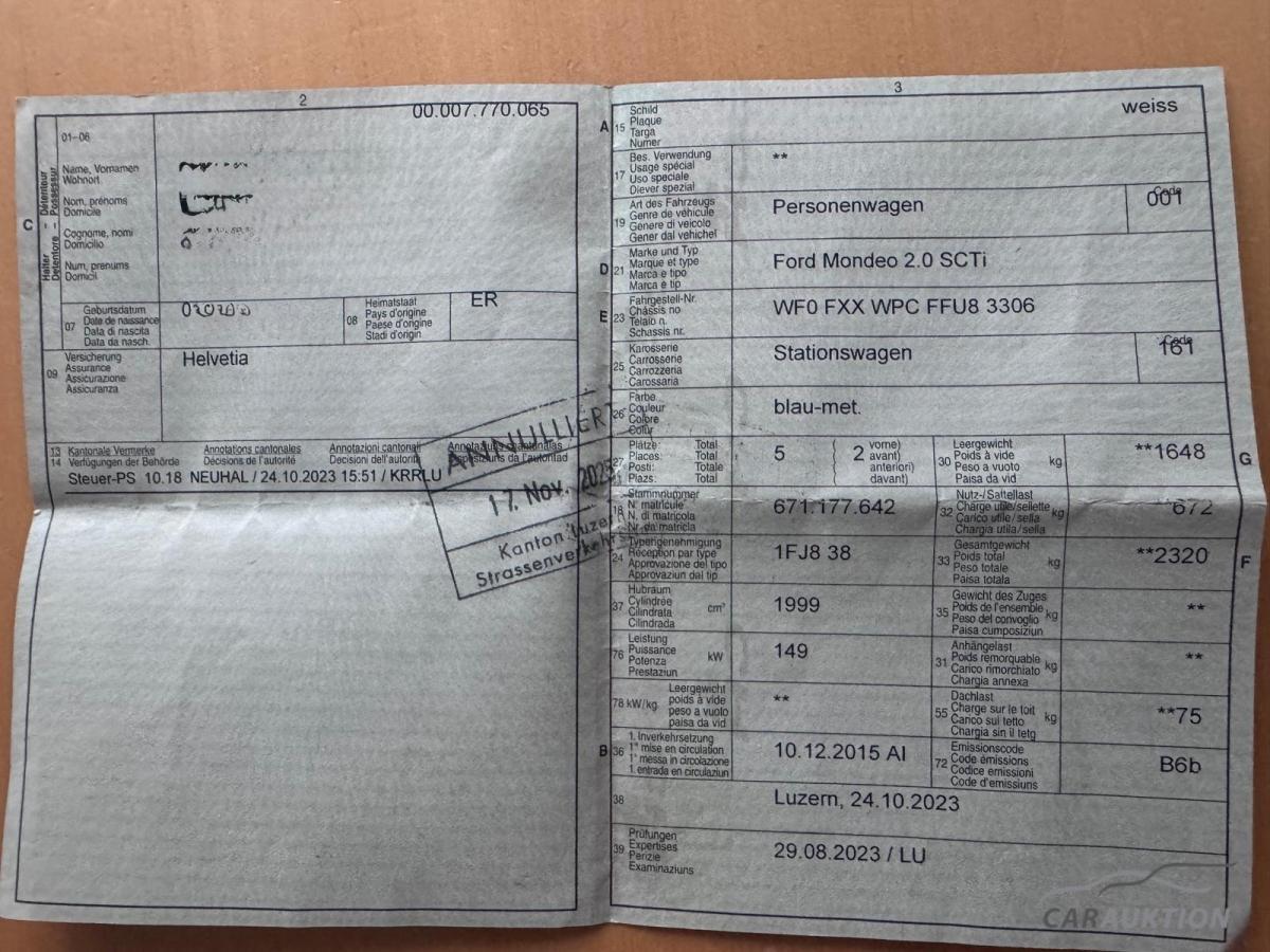 | Fahrzeugausweis | Wird nachgeliefert |