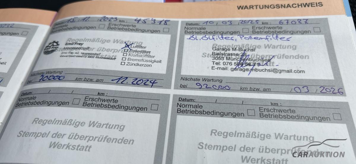 Pack City, Pack Automatic, Keyless Schliess- und Startsystem, Stop + Start System, Elektrische Fensterheber vorne + hinten, Aussenspiegel elektrisch einklappbar, Aussenspiegel elektrisch verstellbar und heizbar, Geschwindigkeitsregler und – begrenzer programmierbar, Zusatztönung der hinteren Scheiben, Servolenkung, Dieselpartikelfilter, Airbag Fahrer und Beifahrerseite, Seitenairbags vorne, Windowbags vorne + hinten, Totwinkel-Assistent, Einparkhilfe vorne, Einparkhilfe hinten, Reifendruck-Kontrollsystem RDK, Nebelscheinwerfer mit Abbiegelicht, Bremsassistent EBA, HSA Berganfahrassistent, ABS und EBV Elektr. Bremskraftverteilung, Dynamische Traktions-Control DTC, ESP/ ASR, Zwei Zonen-Klimaautomatik, Lederlenkrad, Sitzbezüge Leder/ Stoff, Vordersitze höhenverstellbar, Geteilte Rücksitzbank 1/3, 2/3, Vordersitze mit Lendenwirbelstütze, Automatisch abblendbarer Innenspiegel, Mittelarmlehne hinten mit Durchladesystem, Schublade unter Beifahrersitz, Teppichauflage vorn und hinten, Audiosystem CD/ MP3, Bluetooth Freisprecheinrichtung, Touchscreen-Bildschirm, Connect Box, Keine Gewähr auf die Angaben der Serienausstattungen