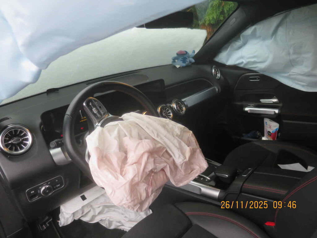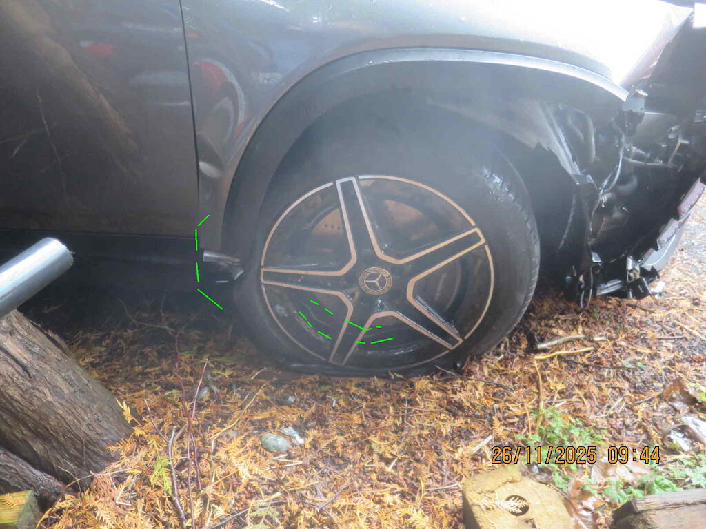 Sst und Scheinwerfer vr abgerissen, Felge vr gebrochen, Antriebswelle ausgerissen, Radaufhängung vr beschädigt, Kotflügel und A-Säule vr deformiert, Schlossträger gebrochen, Zusatzheizung vr unklar, Felge hl stark zerkratzt, alle 4 Reifen beschädigt, Heckklappe steht schief, Spaltmass re/li ungleich – Ursache unklar