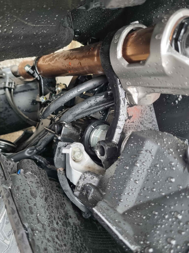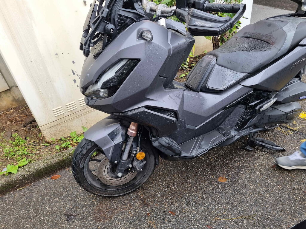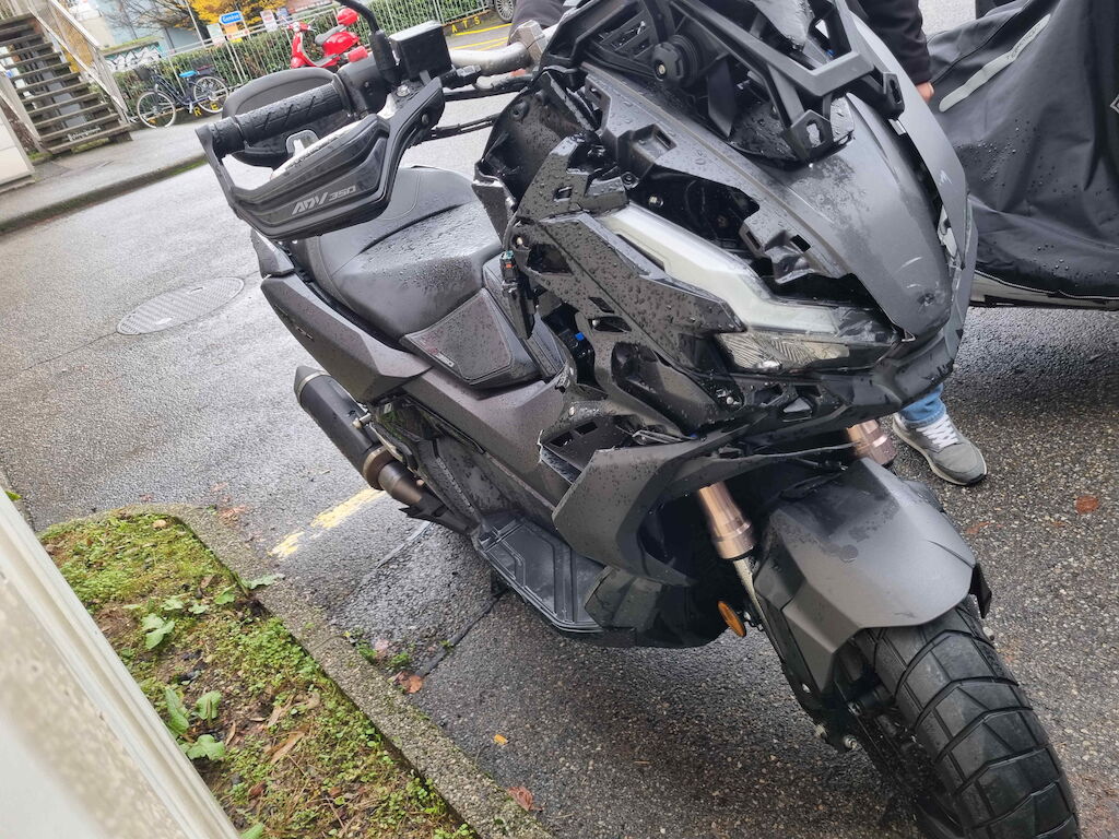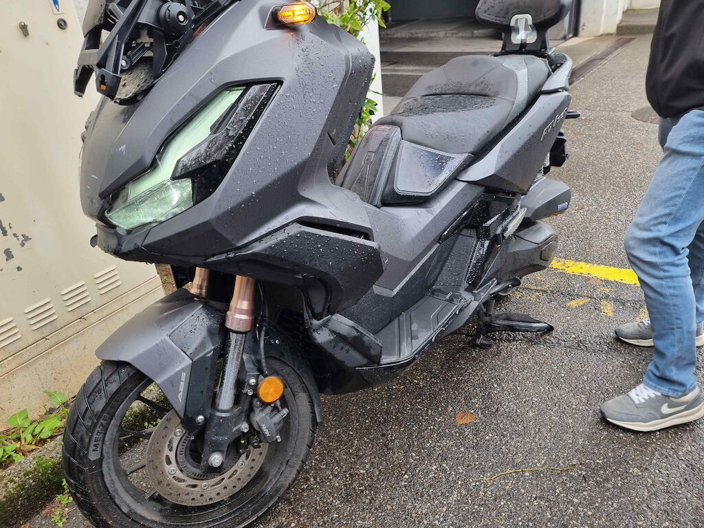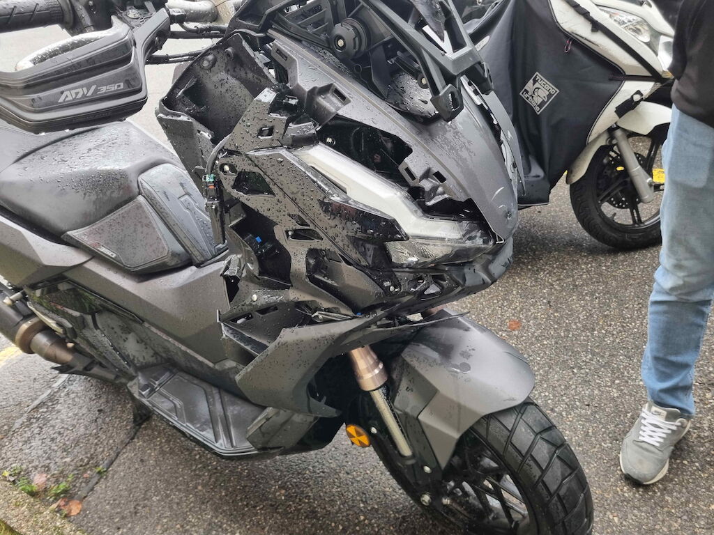 Fort choc à l’avant avec chute sur le côté. Fourche, té de fourche, neiman, cadre, carénages AV, phare, bas de caisse G et D… (liste non-exhaustive)
