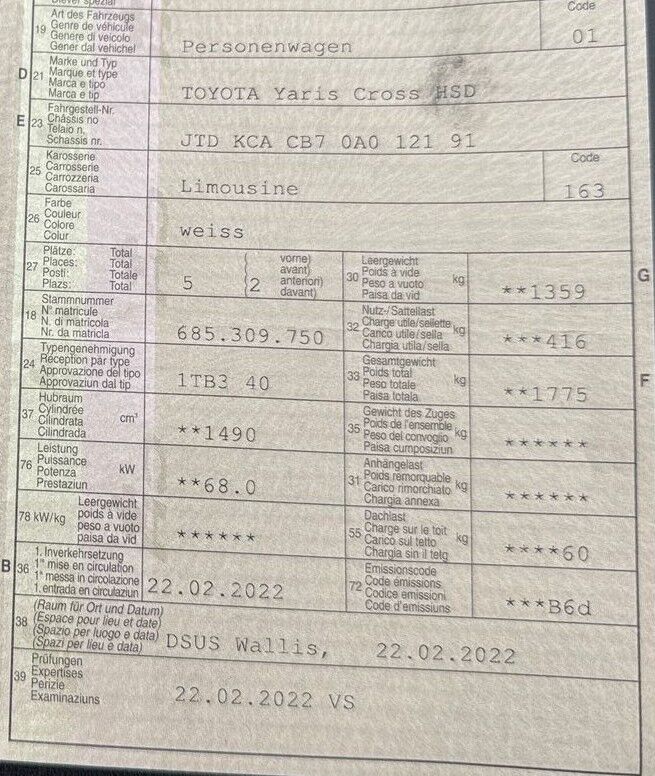 | Tipo | Yaris Cross 1.5 VVT-i HSD AWD-i |