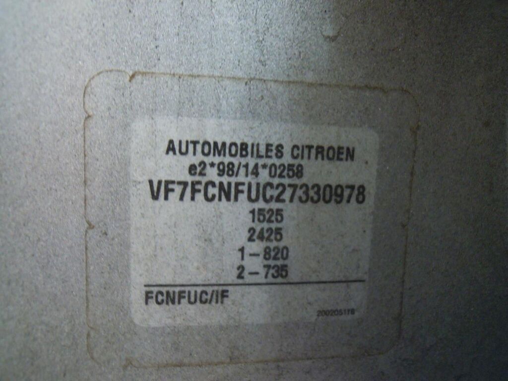 Numero telaio VF7FCNFUC27330978