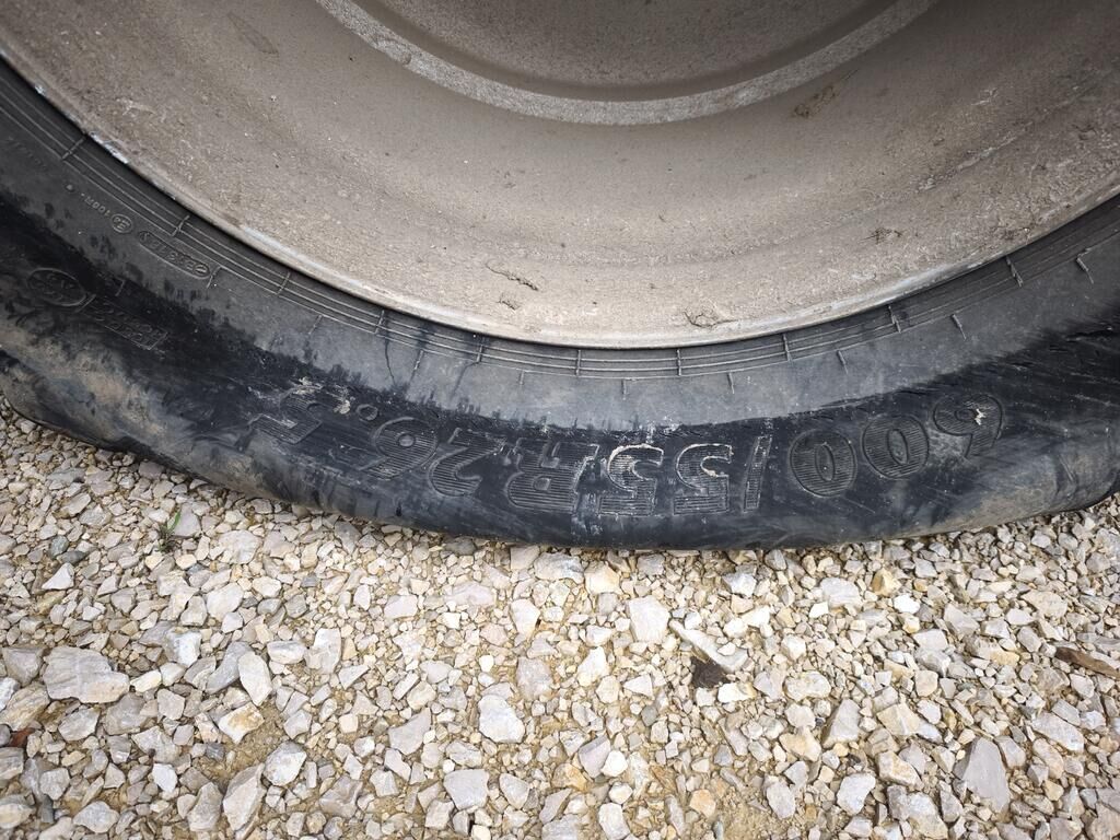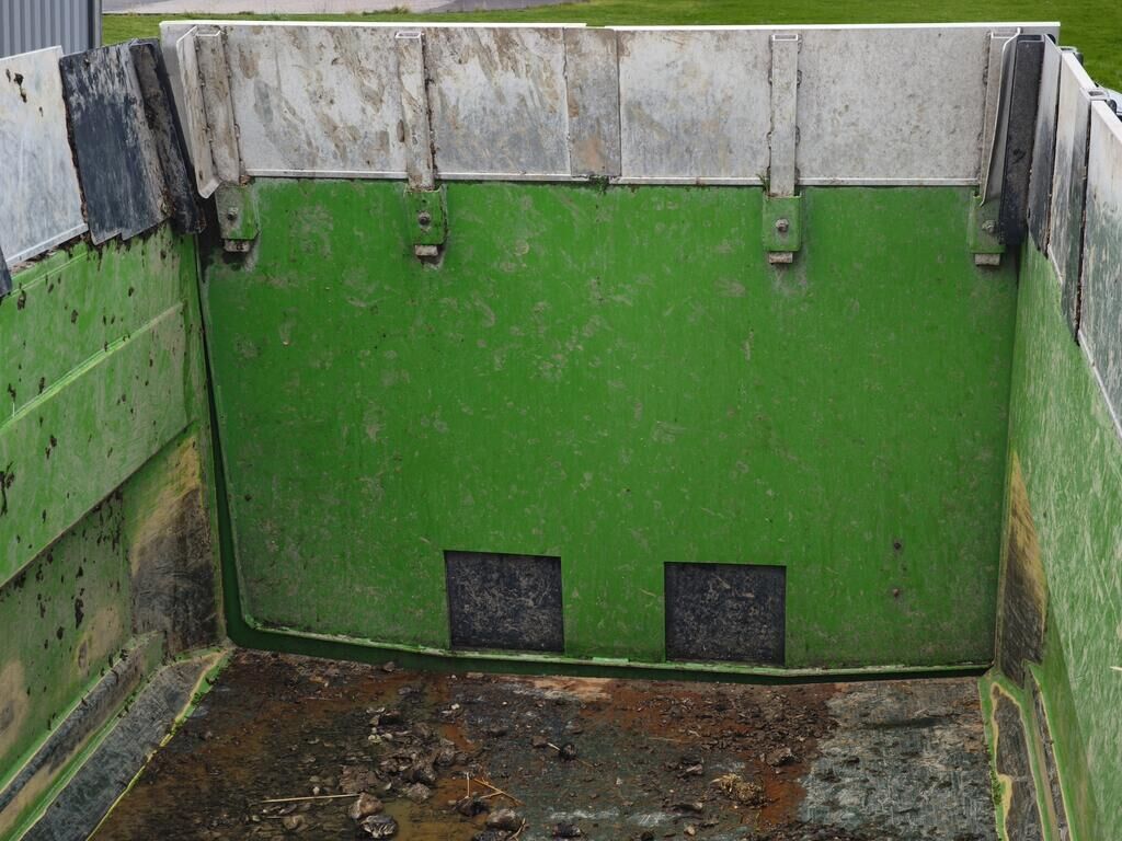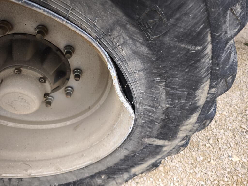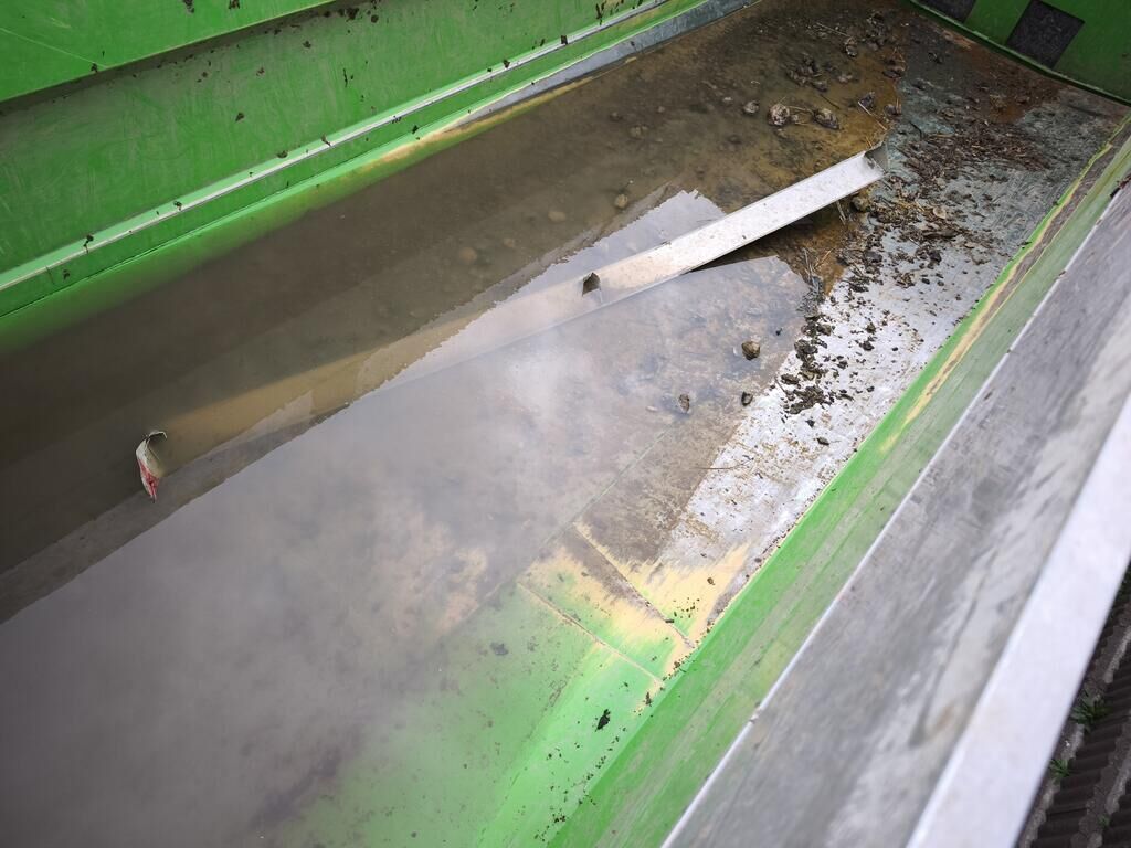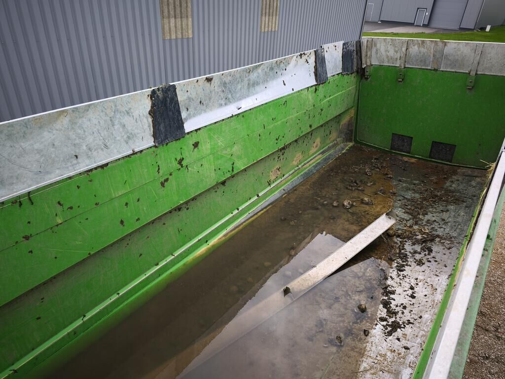 Timon, jante avant droite, flanc droite de la benne frotté et enfoncé, benne voilée et n’est plus d’équerre, charnière droite de ridelle arrière.