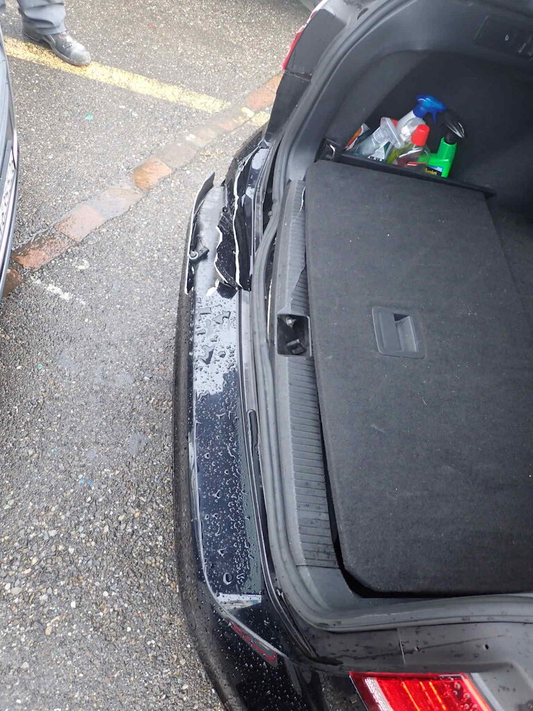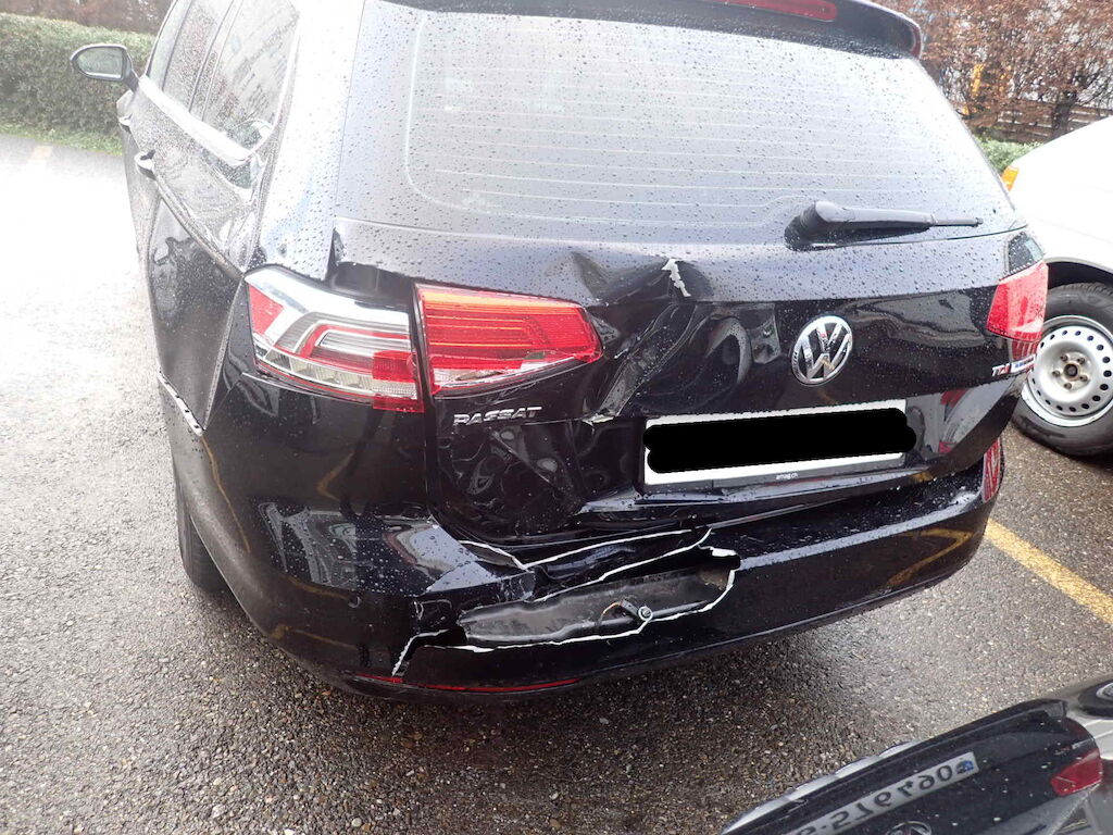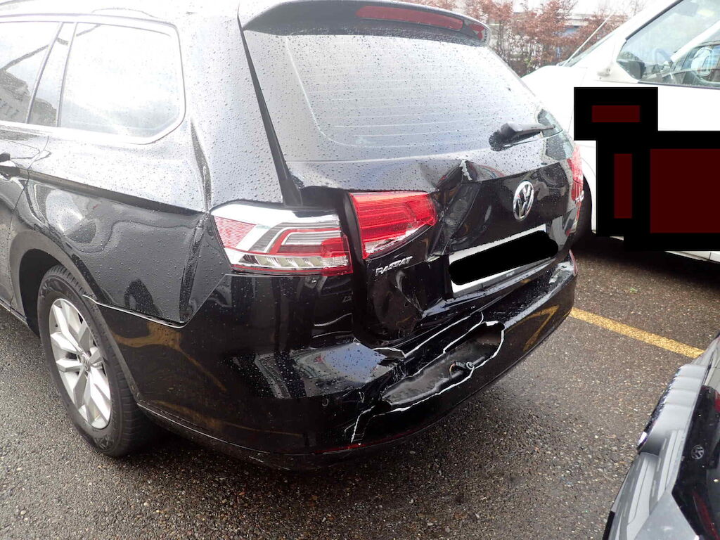 Anprall hinten L , dabei wurde die Seitenwand HL, das Heckblech, Heckdeckel beschädigt