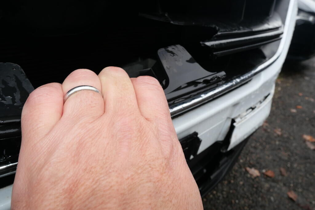Stossstangenhaut, Kühlergrill, Blenden und beide Scheinwerfer gebrochen