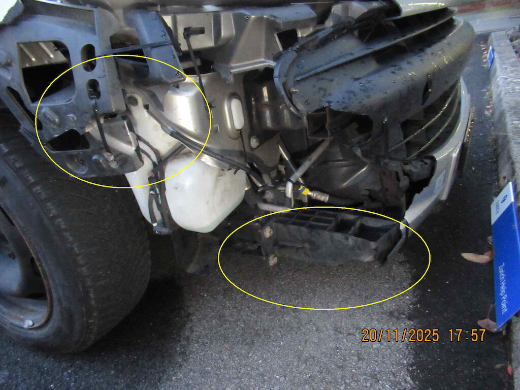 Stossfänger, Balken, Kühlergrill, Nebelscheinwerfer, Kotflügel, Radhausabdeckung und Raddeckel vorne rechts beschädigt