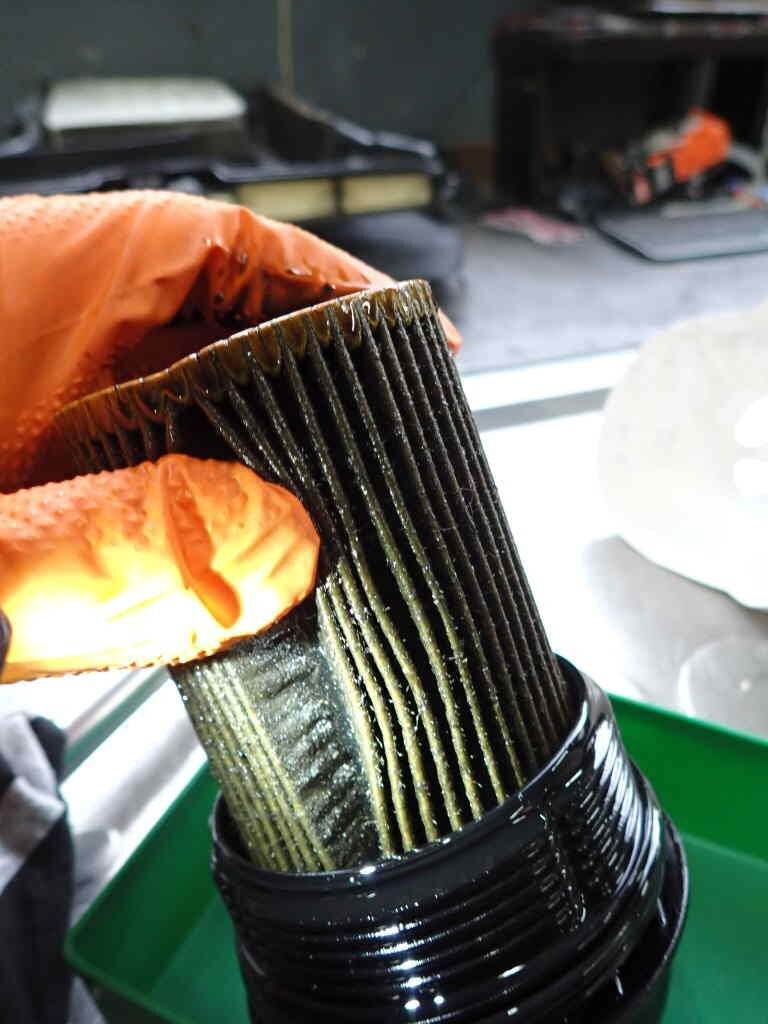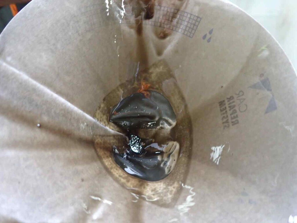 Moteur tape, particules métalliques sont visibles dans l’huile.