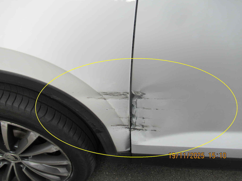 Stato al collaudo durchschnittlich dem Alter entsprechendDiv. Türdellen und leichte Kratzer rundumHeckdeckel beschädigtDachrahmen vorne rechts beschädigtFelgen beschädigtTüre und Türgriff vorne rechts beschädigt