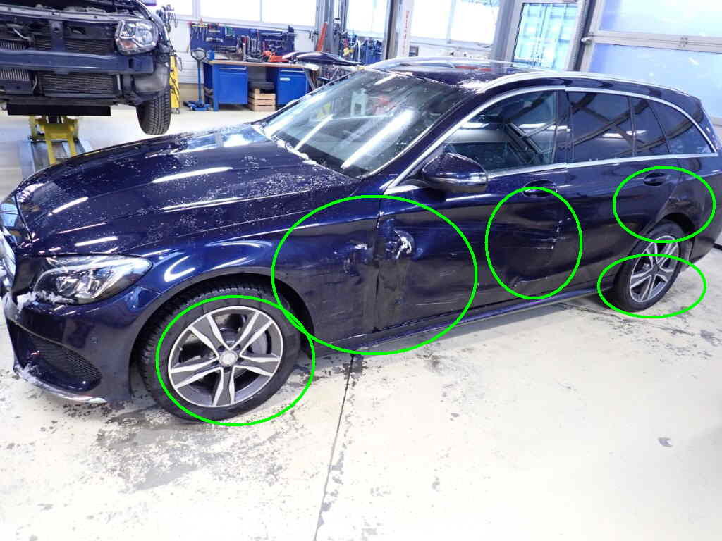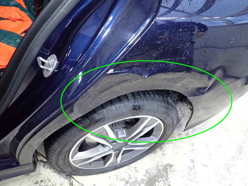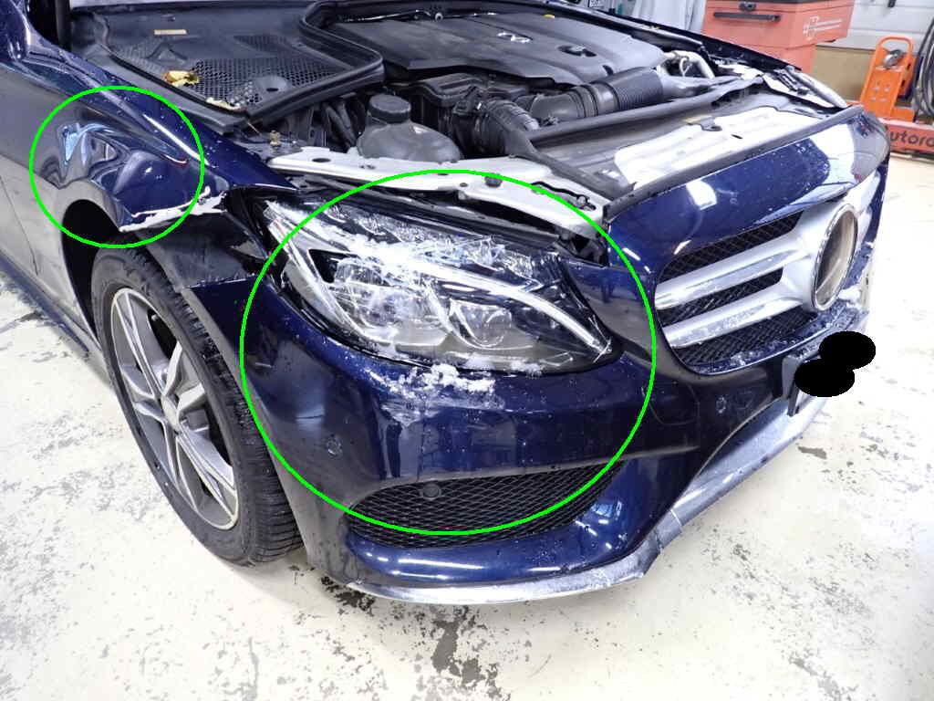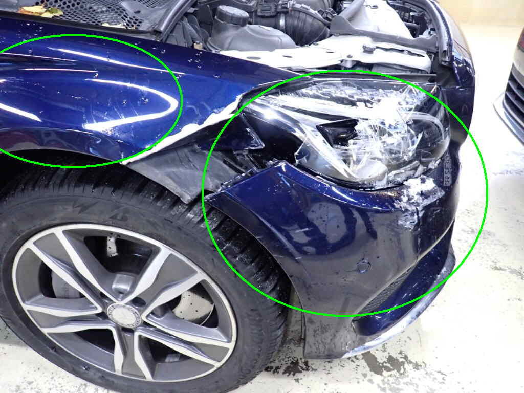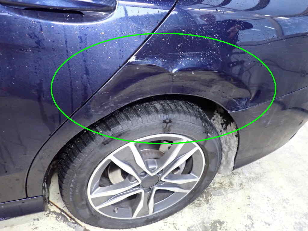 Parechoc av, coin droite, phare, aile droite. Flanc gauche, ailes, portes, bas de caisse Montant A g, parechoc arr, jantes