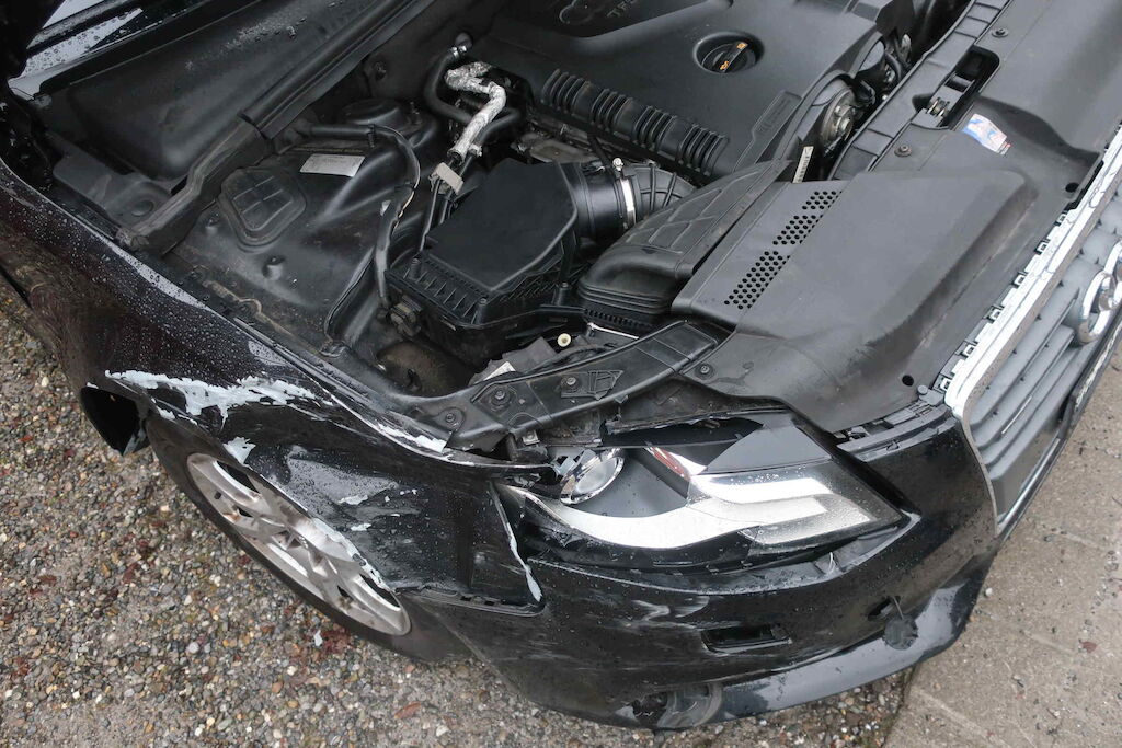 Stossfänger vorne, Kotflügel rechts, Schweller rechts, Scheinwerfer und Nebelleuchte rechts, Haube, Rad vorne rechts, Aufhängung vorne rechts, A-Welle rechts, Beifahrertüre