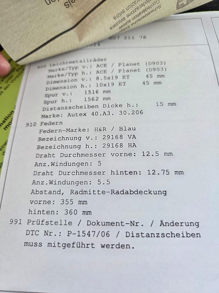 Fahrwerk gemäss Beiblatt umgebaut und eingetragen.