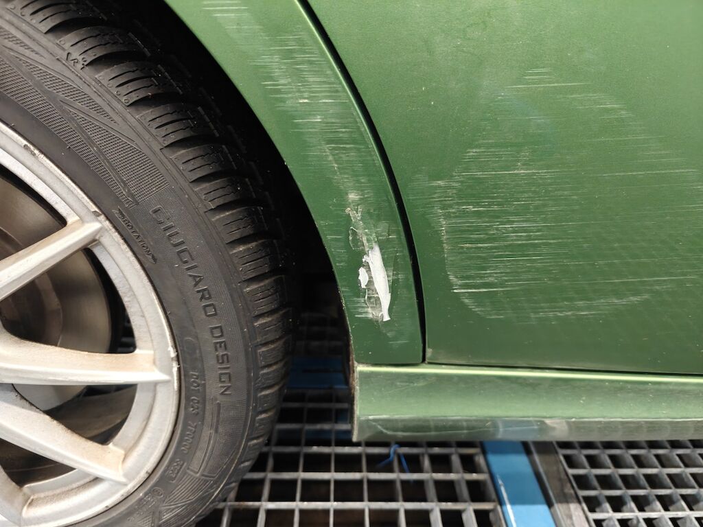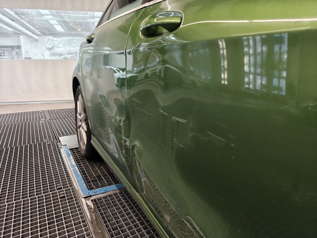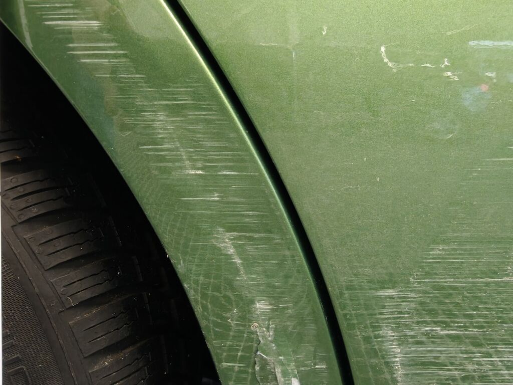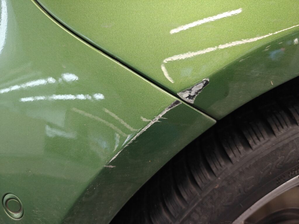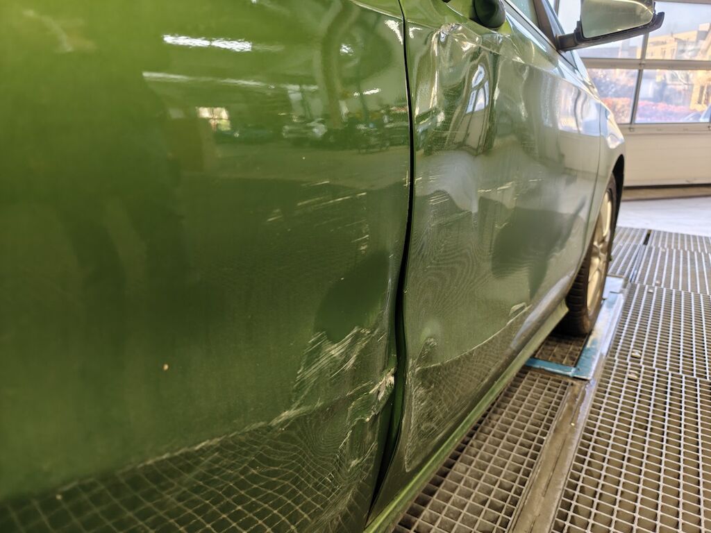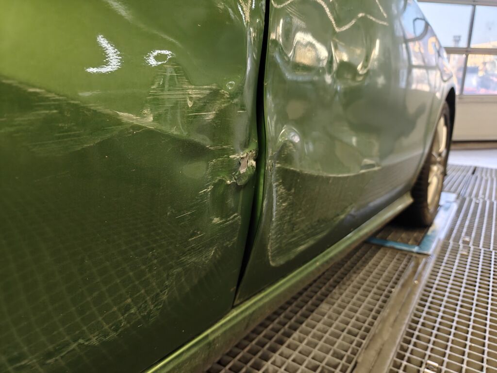 Der rechte Aussenspiegel, die vordere und hintere Türe, die Seitenwand, die Schwellerverkleidung sowie die hintere Felge sind beschädigt.