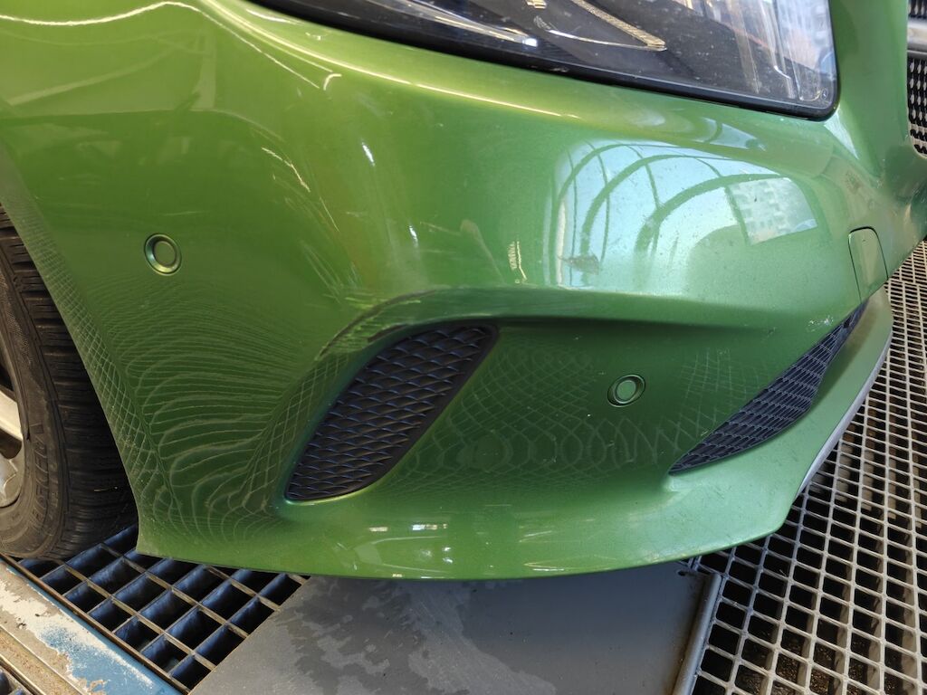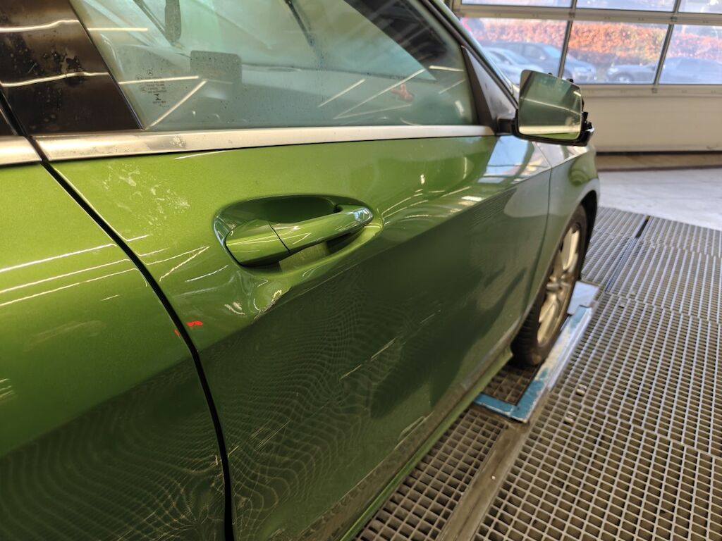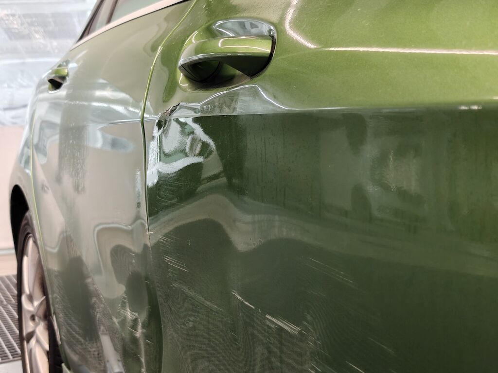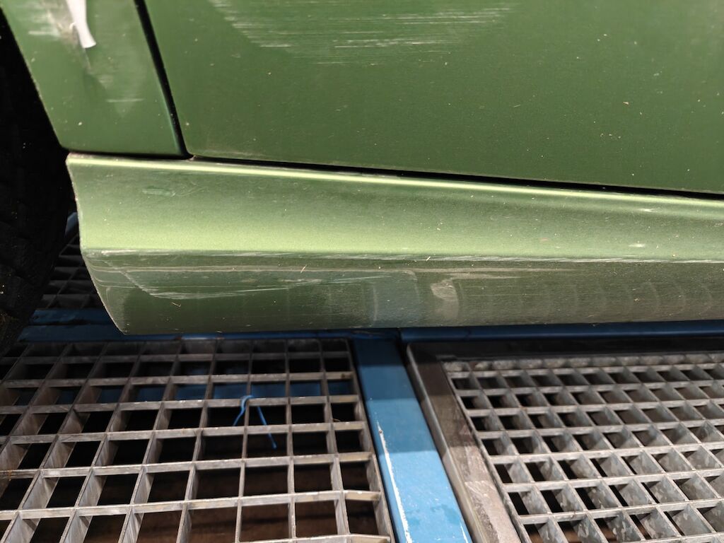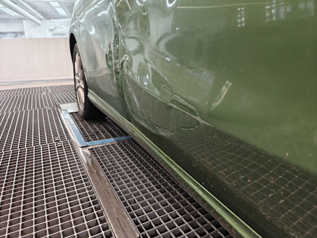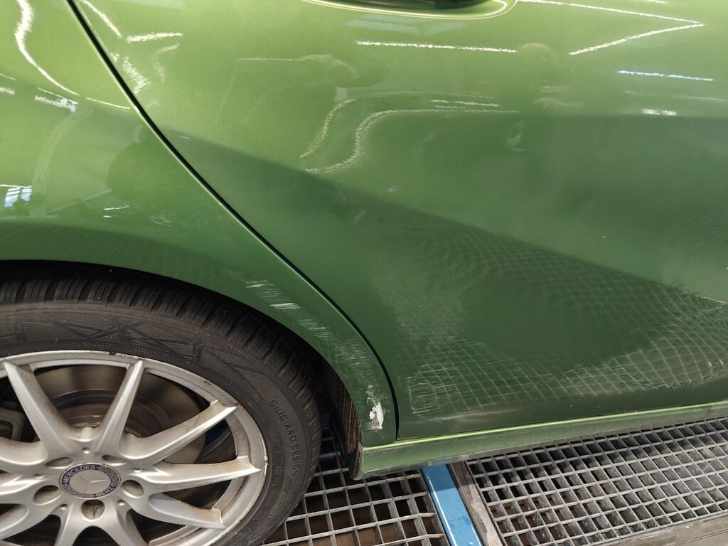 Der rechte Aussenspiegel, die vordere und hintere Türe, die Seitenwand, die Schwellerverkleidung sowie die hintere Felge sind beschädigt.