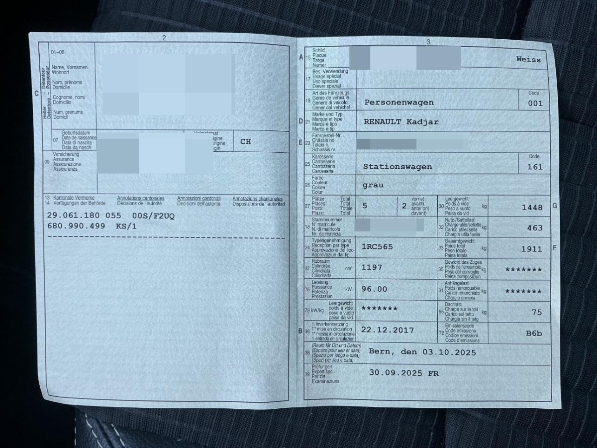 USB+AUX-Anschluss, Compatible mit Apple CarPlay und Android Auto, 4 Leichtmetallfelgen 19J mit Pneu, Digital Uhr, Kopfairbags vorne und hinten, Wegfahrsperre elektronisch, Licht: Nebelschlussleuchte, Fernlicht-Assistent, R-Link mit 7” Touchscreen, Navigation mit Europakarte, Zentralverriegelung mit Fernbedienung und automatischer Türverriegelung, Räder: Reifenreparatur-Set (Tire Fit), Sonnenblenden mit beleuchtetem Schminkspiegel, Lenkrad längs- und höhenverstellbar, Drehzahlmesser, Pollenfilter (Staubfilter), Verkehrsschild-Erkennungssystem, Bordcomputer, 2-Zonen-Klimaautomatik, ABS, EBD elektronische Bremskraftverteilung, Bose Soundsystem, Licht: LED-Tagfahrlicht, Servolenkung, Licht: Drittes Bremslicht, Assist: Aktiver Spurhalteassistent, Antriebsschlupfregelung (ASR), 7 Lautsprecher, Tempomat mit Geschwindigkeitsbegrenzer, Gurtstraffer vorne und hinten, Kreuzstütze für Fahrersitz verstellbar, Keyless Drive Hands-free, Berganfahrhilfe, Multifunktionslenkrad in Nappaleder, Aussenspiegel rechts und links beheizt, elektrisch verstell- / und einklappbar, Elektronisches Stabilitäts-Programm (ESP), Airbag Beifahrer deaktivierbar, Radiovorbereitung, Antenne und Entstörung, Bluetooth-Schnittstelle, Rücksitzlehne geteilt abklappbar, Easybreak: ebene Ladefläche, Beifahrersitz umklappbar, Katalysator geregelt, Digitaler Radioempfang (DAB/DAB+), Abgedunkelte Seiten- und Heckscheibe, Heckscheiben-Wisch-/Waschanlage mit, Einparkhilfe vorne und hinten, Automatische Scheibenwischer vorne und automatisches Einschalten der Scheinwerfer (Show me Home), 3-Punkt-Sicherheitsgurte auf allen Plätzen, Höhenverstellbare Gurten vorne, Mittelarmlehne hinten, Aussentemperaturanzeige, Teppichfussmatten Premium mit Logo, Ladeboden variabel, Seitenairbag für Fahrer und Beifahrer, Elektrische Fensterheber vorne + hinten, Sitze: Fahrersitz in der Höhe verstellbar, Dachreling, Stoff-/Kunstleder-Ausstattung, Seitenschutzleisten verchromt, ISOFIX-Kindersitzverankerungen hinten (2), Sequentielles 7-Gang-Getriebe mit Automatikfunktion, Airbag: Airbag Fahrer und Beifahrer, Automatische Parkbremse, Licht: Nebelscheinwerfer